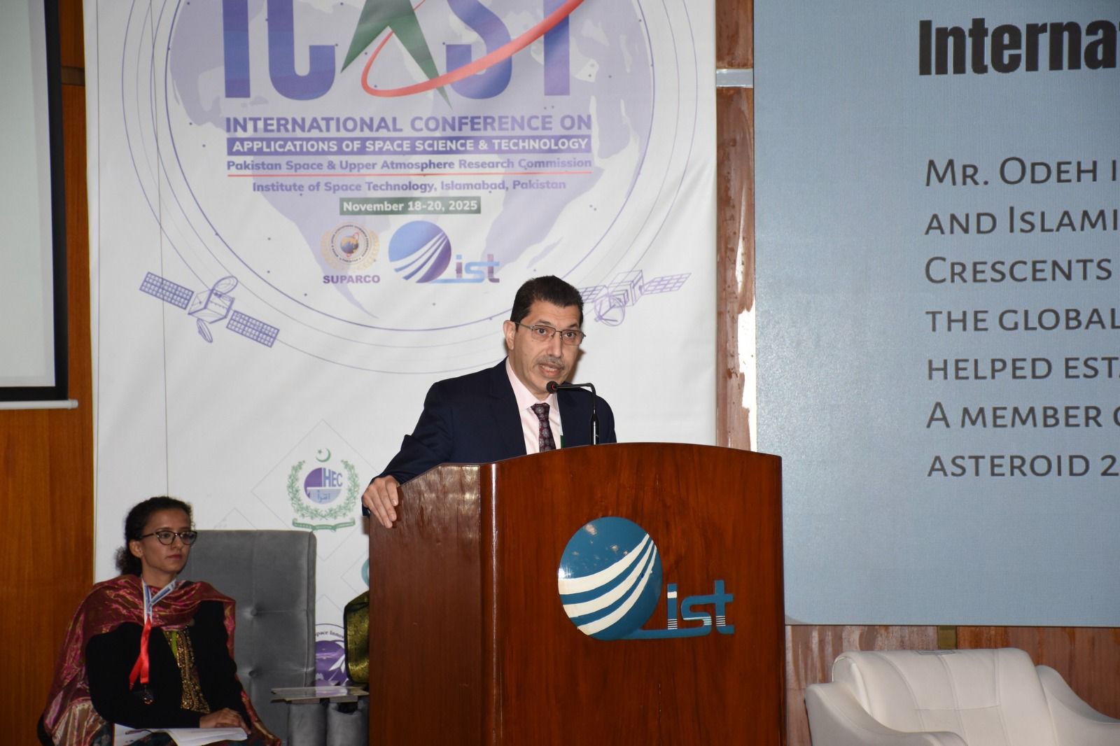 عمون - شارك مركز الفلك الدولي في مؤتمر دولي نظمته وكالة الفضاء الباكستانية ومعهد تكنولوجيا الفضاء، بعنوان "المؤتمر الدولي لتطبيقات علوم الفضاء والتكنولوجيا" وذلك في العاصمة الباكستانية إسلام أباد، خلال الفترة من 18-20 نوفمبر 2025م، ويعتبر هذا المؤتمر أحد أكبر المؤتمرات التي تنظم بشكل دوري في الباكستان، وشارك في المؤتمر وفود ومدراء عدة وكالات الفضاء، ورواد فضاء، ويقدر عدد المشاركين بحوالي 200 مشارك، وعدد الجلسات أكثر من 40 جلسة موزعة على مدى ثلاثة أيام.