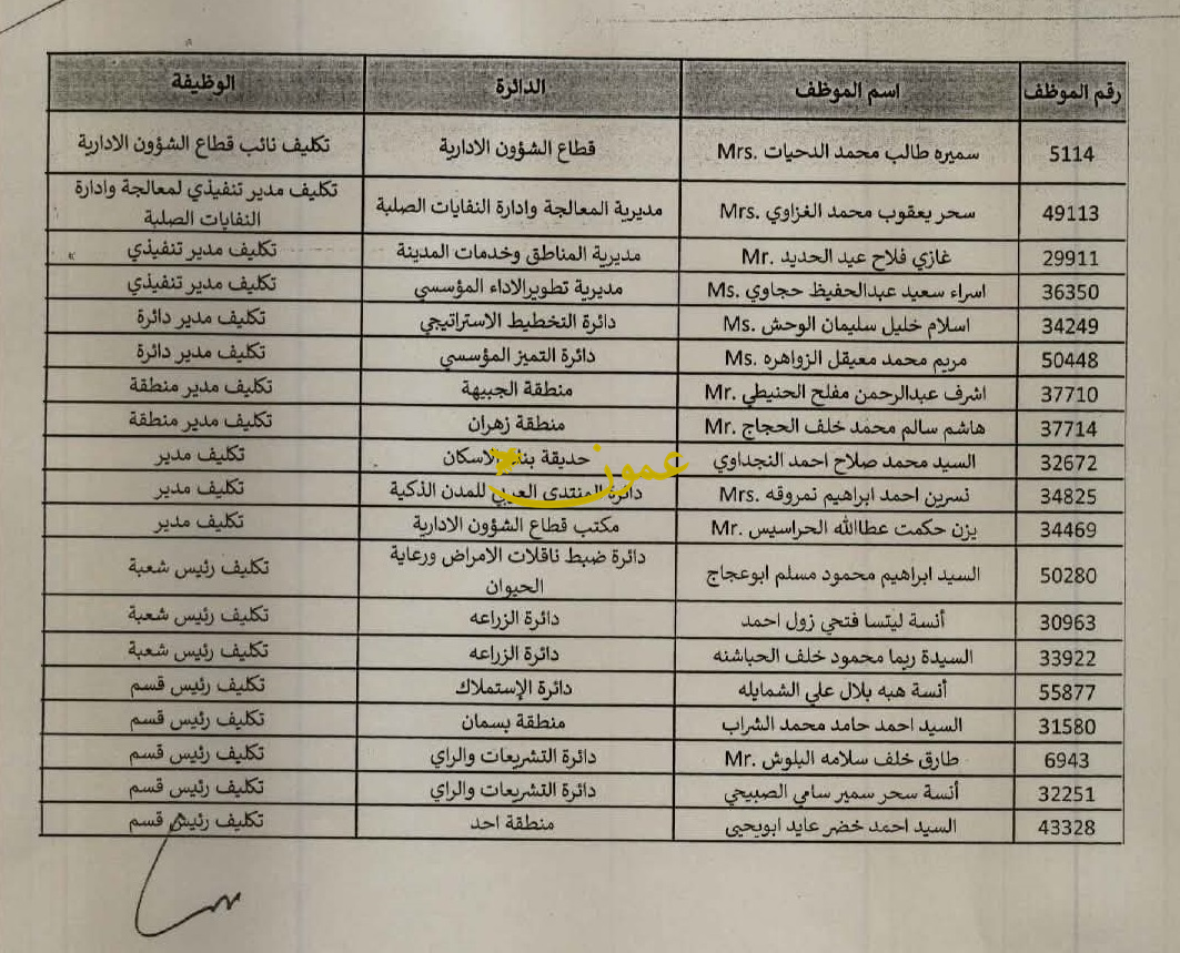 تثبيت مدراء تنفيذيين ودوائر ومناطق ورؤساء شعب واقسام في الأمانة (اسماء)