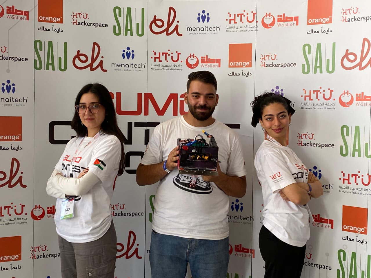 • الطالب عمر الصيراوي – كلية الأمير عبدالله بن غازي للاتصالات وتكنولوجيا المعلومات (قائد الفريق والمسؤول عن البرمجة).