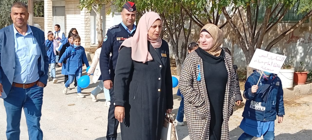 عمون - شاركت مديرة التربية والتعليم للواء المزار الشمالي الأستاذة أميمة المصري اليوم الخميس، في انطلاق فعالية "المسير من أجل السكري" التي نظمتها مدرسة دير يوسف الأساسية للبنات بالتعاون مع مركز الفاروق الصحي والشرطة المجتمعية، وذلك بمناسبة اليوم العالمي للسكري، بحضور مدير صحة إربد الدكتور شادي بنى هاني ومدير مركز الفاروق الصحي الشامل الدكتور أنس البلص، والملازم أحمد الروسان من الشرطة المجتمعية، وأعضاء قسم النشاطات التربوية.