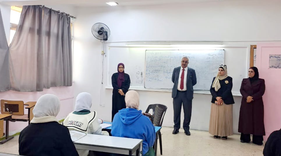 حيث تابع جويعد مدى الالتزام والانضباط بالدوام المدرسي مؤكدا ضرورة متابعة الحضور والغياب ورصده يوميا على منصة أجيال الإلكترونية وتطبيق أسس النجاح والرسوب