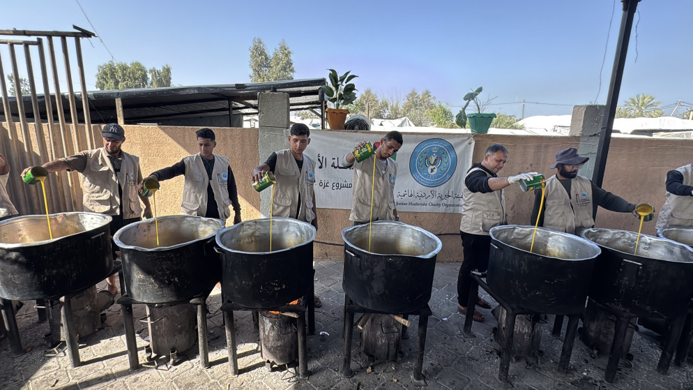 الحملة الأردنية الإغاثية توزع وجبات أرز ولحم على النازحين جنوب غزة