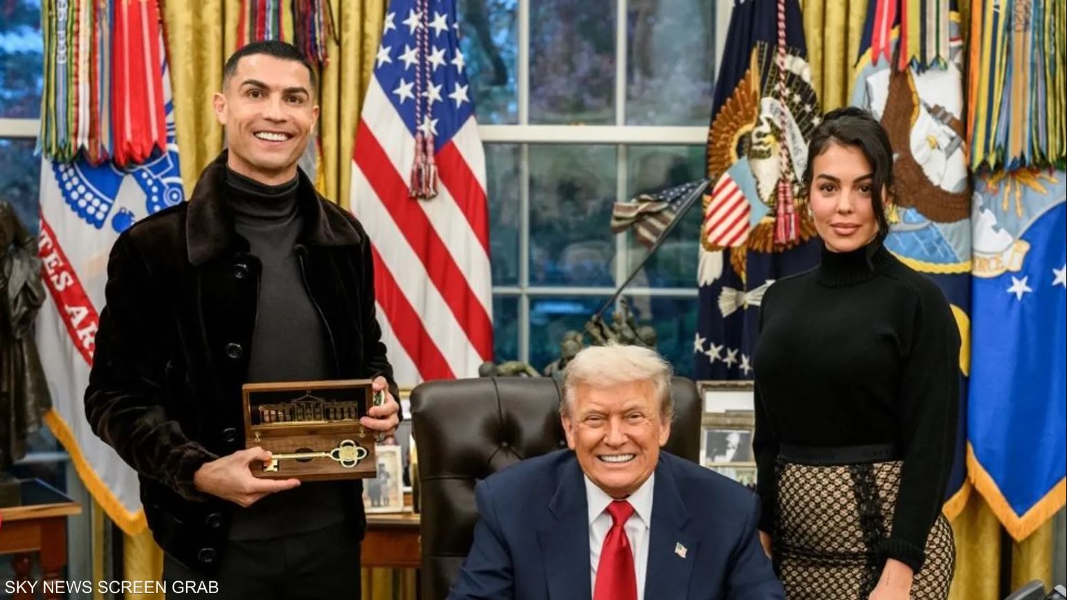 عمون - خص الرئيس الأميركي دونالد ترامب، النجم البرتغالي كريستيانو رونالدو بتكريم خاص بمنحه "المفتاح الذهبي للبيت الأبيض"، وذلك خلال زيارة قائد فريق النصر السعودي إلى واشنطن.