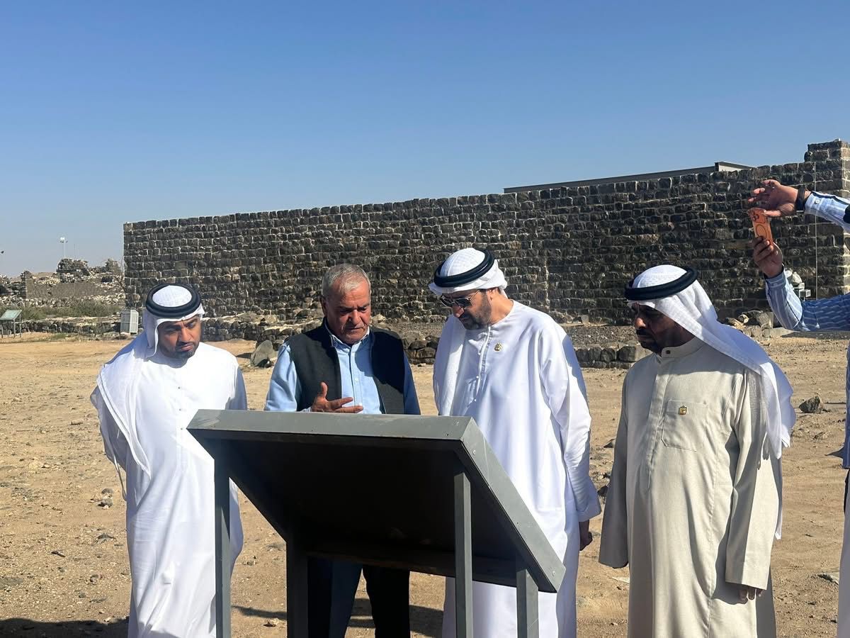 وأبدا الشيخ القاسمي إعجابه في مدينة ام الجمال وتاريخها وقيمتها الأثرية التي دفعت إلى إدراجها على قائمة التراث العالمي.
