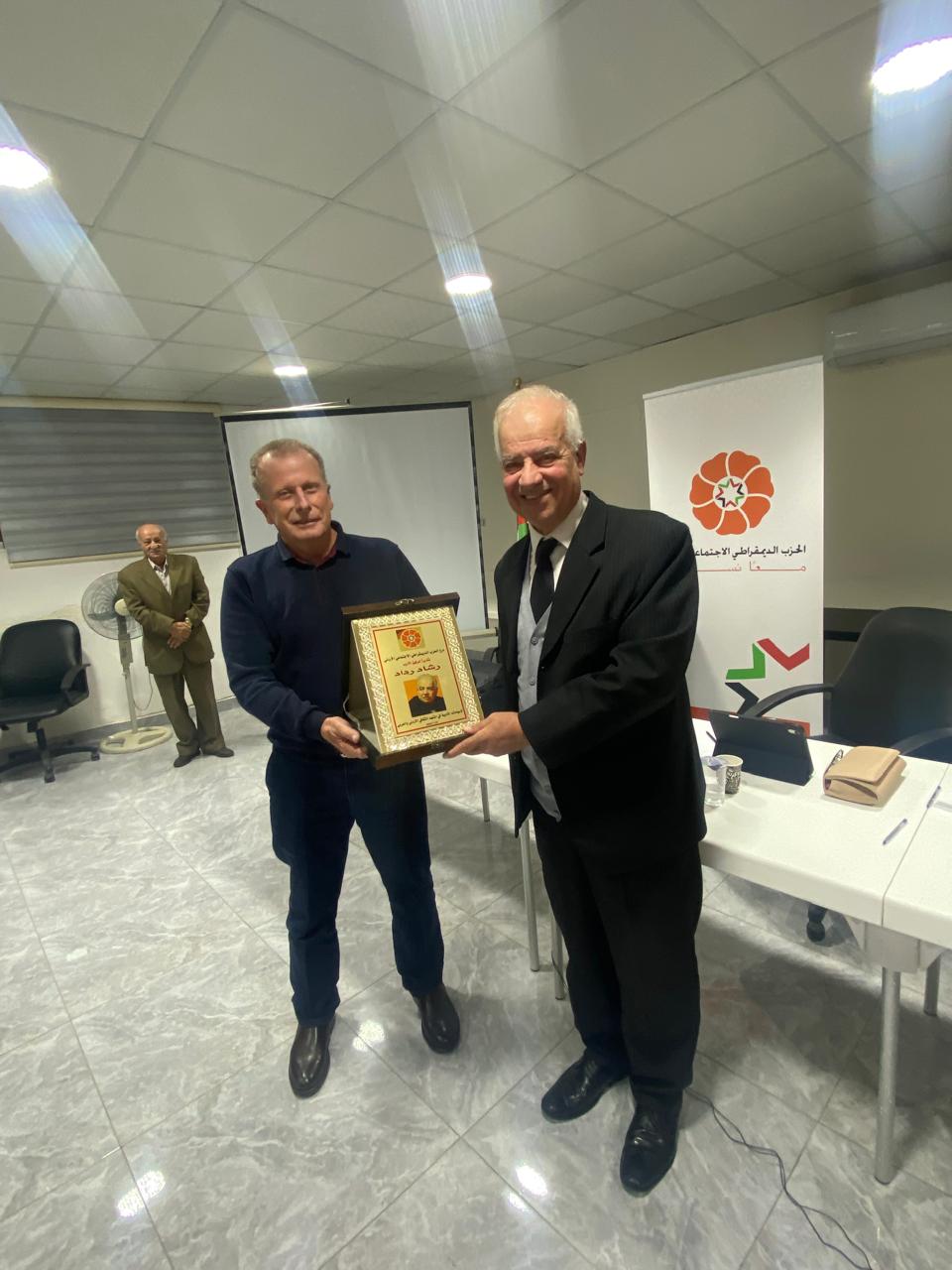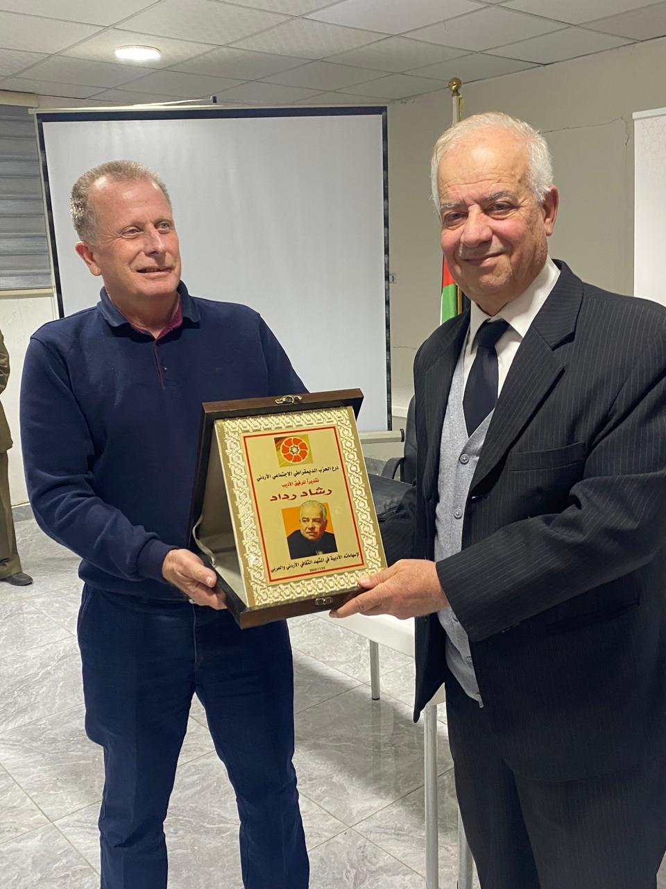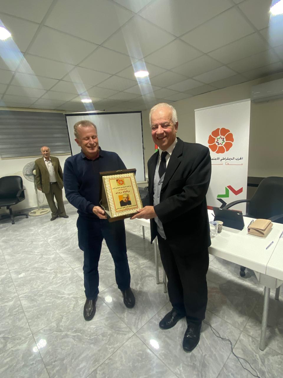 وفي لفتة تقديرية تعكس نهج الحزب في دعم الإبداع الوطني، قام أمين السر في الحزب المهندس عامر حدادين بتسليم رشاد رداد درع الحزب الديمقراطي الاجتماعي تقديراً لإنجازاته الثقافية وإسهاماته في المشهد الأدبي.