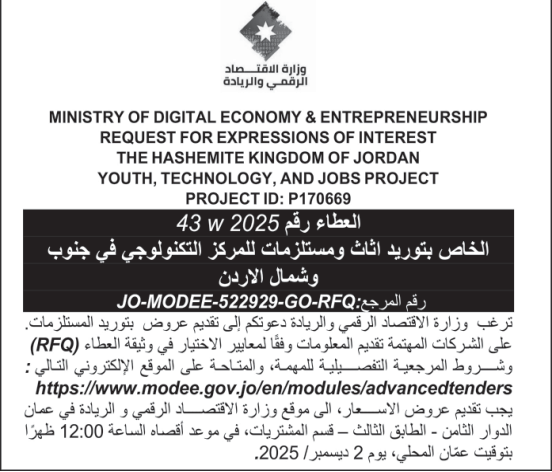 عطاء صادر عن وزارة الاقتصاد الرقمي والريادة