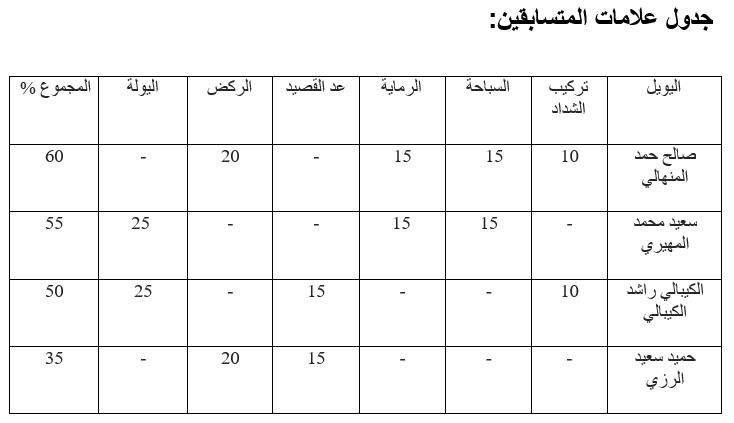وفي تحدي تركيب الشداد تمكن كل من الكيبالي والمنهالي من الحصول على علامته ليحقق كل منهما 10 علامات.