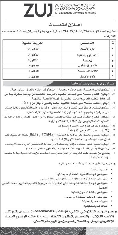 توفر فرص ابتعاث لدى جامعة الزيتونة
