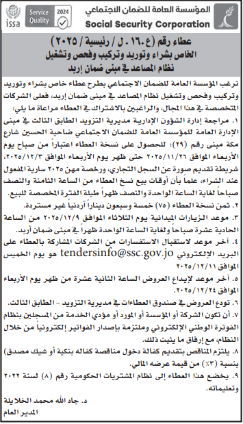 عطاء صادر عن المؤسسة العامة للضمان الاجتماعي