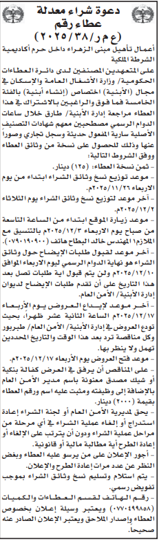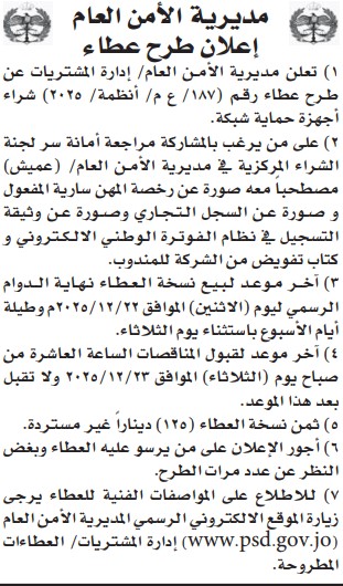 عطاءات صادرة عن مديرية الامن العام