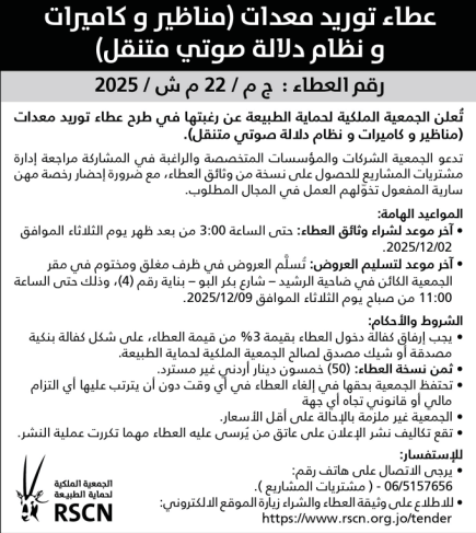 عطاء صادر عن الجمعية الملكية لحماية الطبيعة