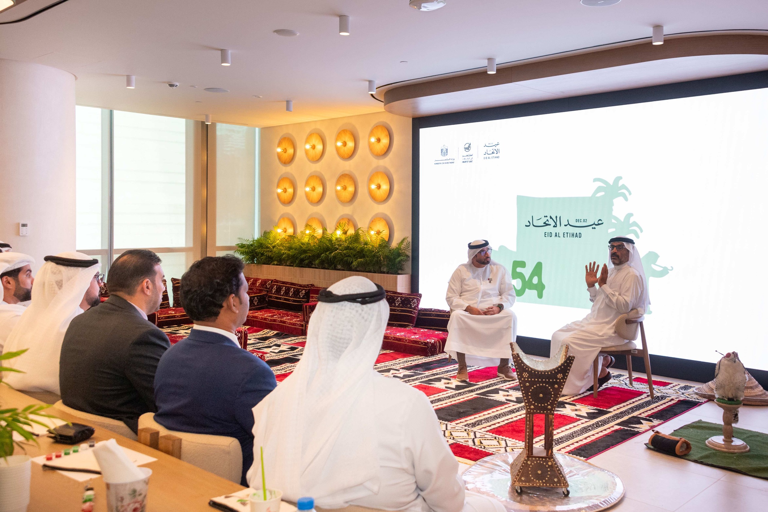 عمون - ضمن رسالته الوطنية الهادفة إلى تعزيز قيم الهوية الإماراتية وترسيخ مفاهيم الانتماء والولاء، شارك سعادة عبد الله حمدان بن دلموك، الرئيس التنفيذي لمركز حمدان بن محمد لإحياء التراث، في احتفالية اليوم الوطني الـ54 التي نظمتها وزارة الاستثمار في دبي، حيث ألقى محاضرة تناولت قيم الاتحاد ومعاني المواطنة ودلالاتها في واقع الحياة اليومية.