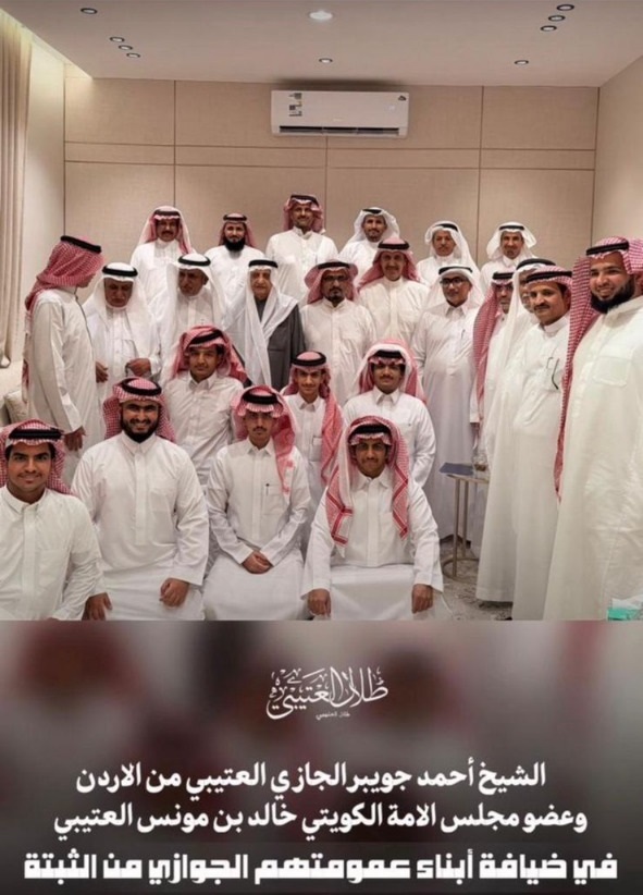 في أجواء عامرة بالكرم والأصالة، قامت قبيلة الثبيتي من قبيلة عتيبة في مكة المكرمة باستقبال اللواء الركن المتقاعد أحمد جويبر العتيبي، وذلك خلال زيارة خاصة قام بها برفقة عضو مجلس الأمة الكويتي السابق خالد مؤنس العتيبي. والدكتور عبدالله العلاونة. |