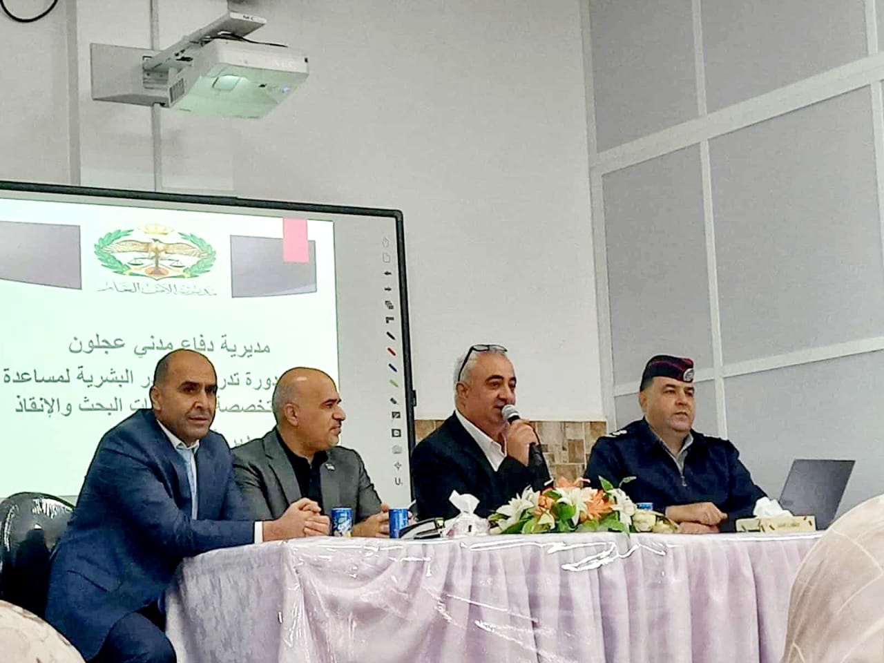 عمون - رعى مدير التربية والتعليم لمحافظة عجلون الأستاذ خلدون جويعد فعاليات تخريج المشاركين في دورة " تدريب الكوادر البشرية لمساعدة الفرق المتخصصة في عمليات البحث والإنقاذ" الموجهة لضباط ارتباط المخاطر على مستوى مدارس المحافظة في مدرسة عنجرة الثانوية الشاملة للبنات يرافقه رؤساء أقسام الرقابة الداخلية والتعليم العام و ضابط ارتباط المخاطر.