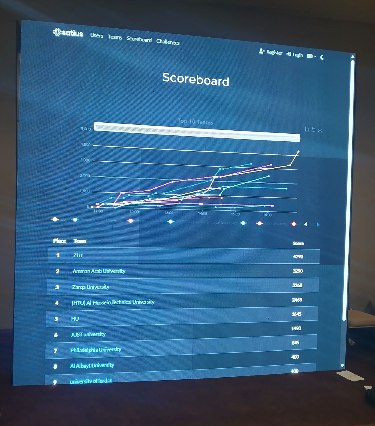 حيث ضم الفريق كلاً من الطلبة: عامر غيث، عبدالرحمن القيسي، ومحمد العجارمة، الذين قدموا أداءً متميزًا خلال مختلف مراحل المسابقة، والتي شملت اختبارات عملية في الهجوم الإلكتروني والتعامل مع سيناريوهات تحاكي التحديات الحقيقية في مجال الأمن السيبراني، وتمكن الفريق من التقدم في معظم مراحل التحدي قبل أن يحرز المركز الثاني بفارق بسيط محافظًا على مستوى تقني رفيع طوال المنافسة، حيث أشرف على تدريب وتأهيل الفريق كلاً من : الدكتور رامي سحويل عميد كلية تكنولوجيا المعلومات، والدكتور كمال عليان مساعد العميد من خلال برنامج تدريبي مكثف ودعم فني مستمر قبل المشاركة وخلال جميع مراحل المسابقة، وشهدت المسابقة مشاركة (13) جامعة أردنية، حيث حصلت جامعة الزيتونة على المركز الأول، تلتها جامعة عمان العربية في المركز الثاني، ثم جامعة الزرقاء في المركز الثالث.