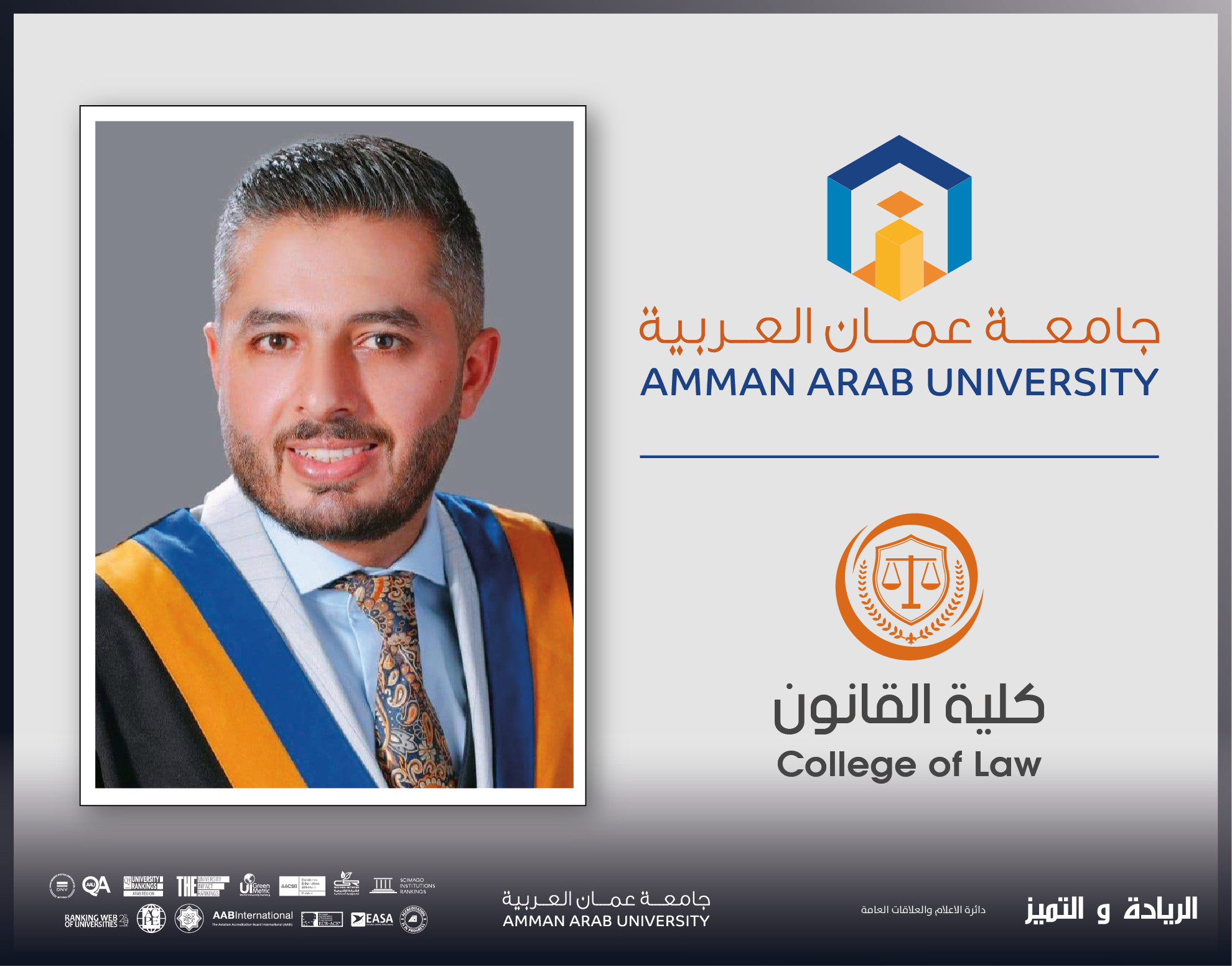 يذكر بأن جامعة عمان العربية تواصل دعم وتشجيع أعضاء الهيئة التدريسية للمشاركة في الورش والندوات الإقليمية والدولية، ضمن مساعيها المستمرة لتحقيق الريادة والتميز الأكاديمي، وتعزيز مكانتها في ميادين البحث العلمي والتعليم العالي.