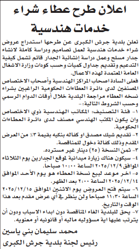 عطاء شراء خدمات هندسية لبلدية جرش