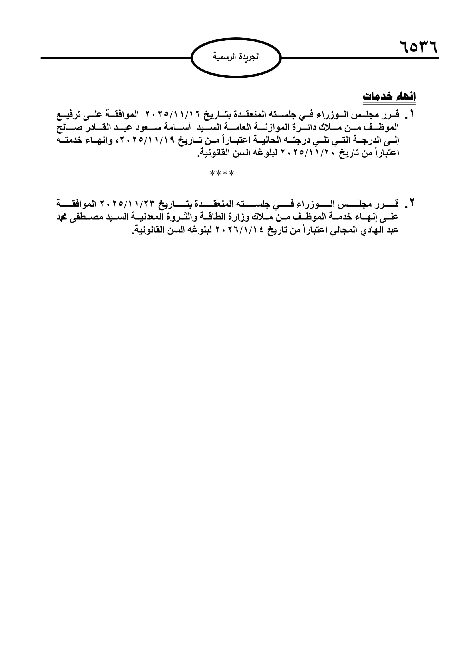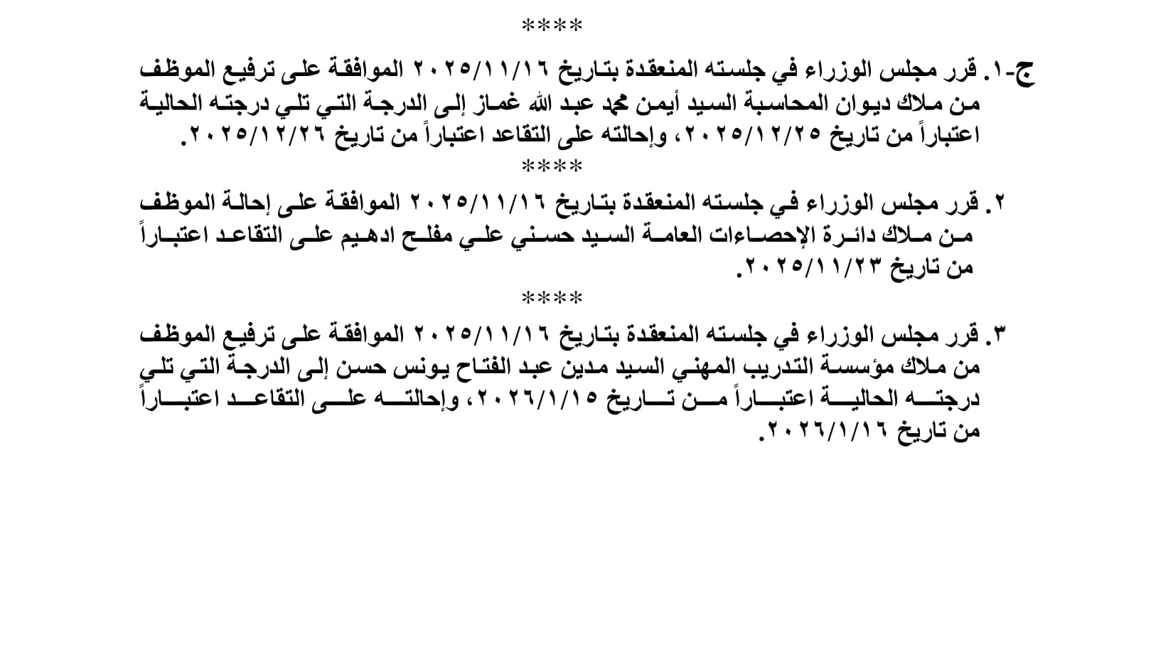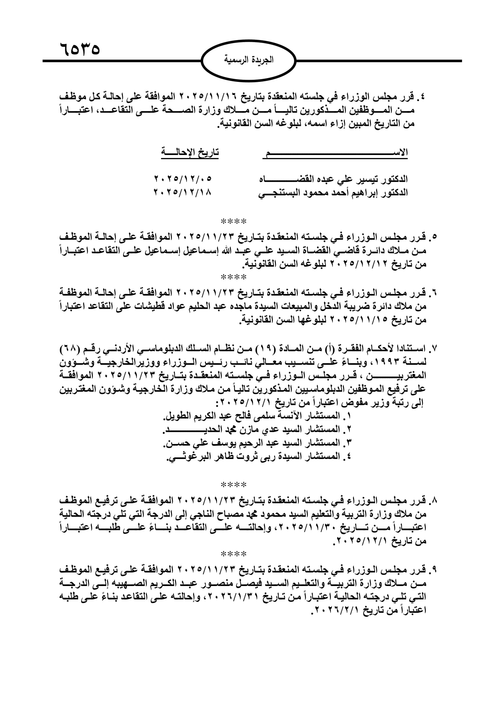 عمون - صدر في عدد الجريدة الرسمية اليوم الاثنين، قرارات مجلس الوزراء بالموافقة على إحالة موظفين حكوميين إلى التقاعد، وانهاء خدمات آخرين.