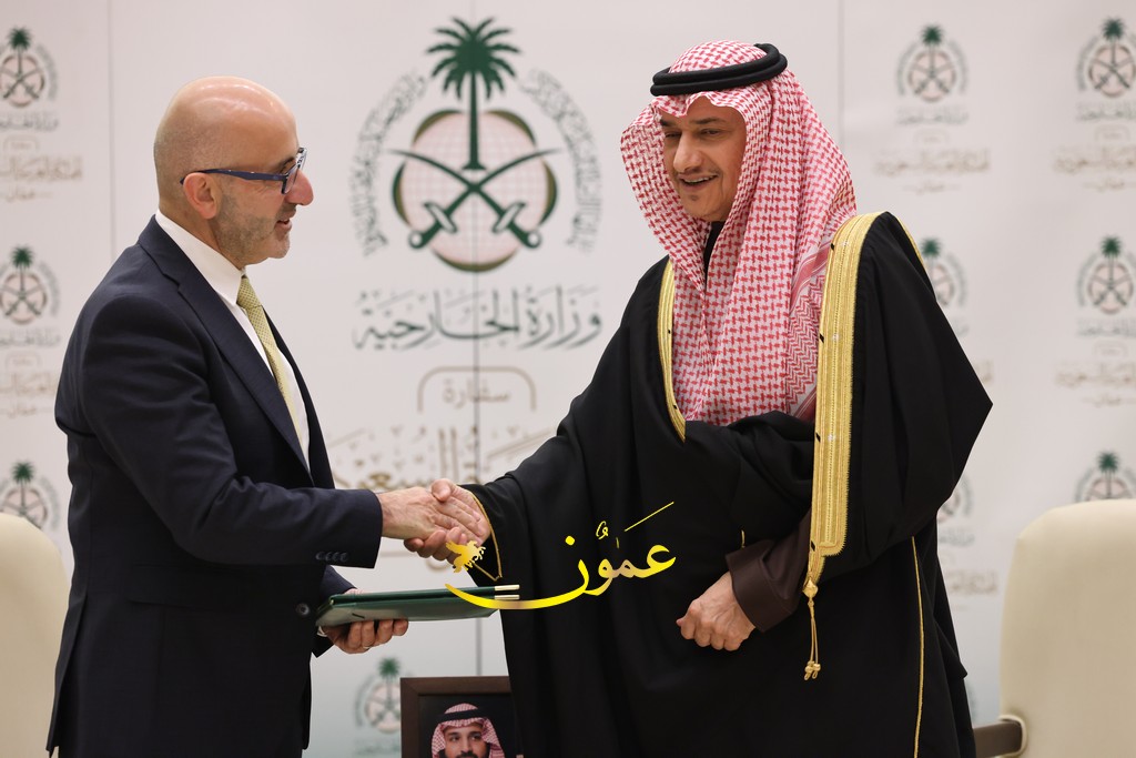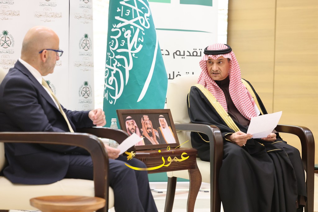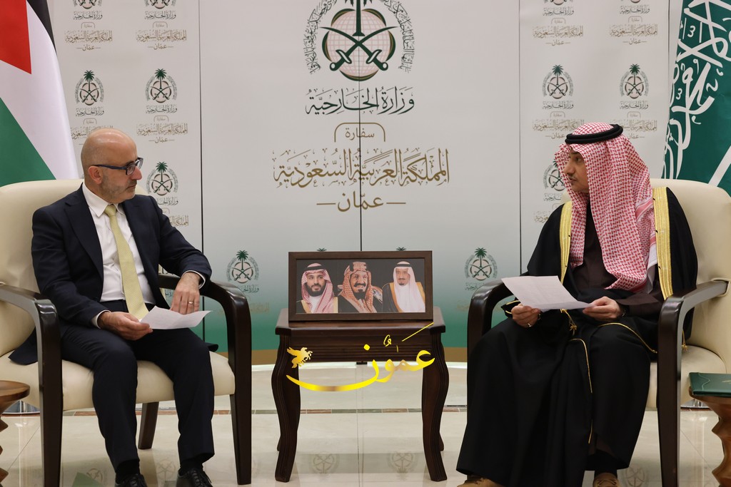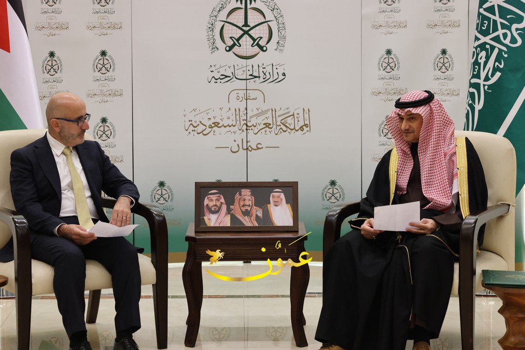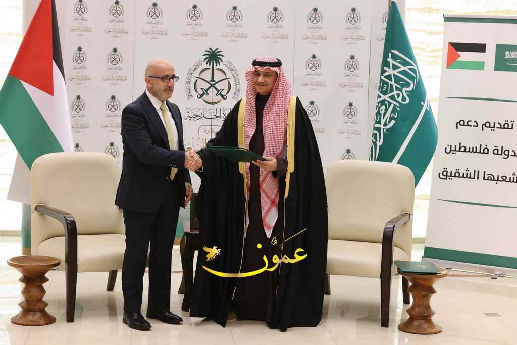 عمون - سلّم سفير خادم الحرمين الشريفين لدى الأردن الأمير منصور بن خالد بن فرحان آل سعود، بمقر السفارة اليوم، وزير التخطيط والتعاون الدولي ومُسَيِر أعمال وزارة المالية في الحكومة الفلسطينية الدكتور اسطفيان سلامة، الدعم المالي المقدم لدولة فلسطين من المملكة العربية السعودية بقيمة 90 مليون دولار، في إطار الدعم السعودي المستمر لدولة فلسطين للعام 2025.