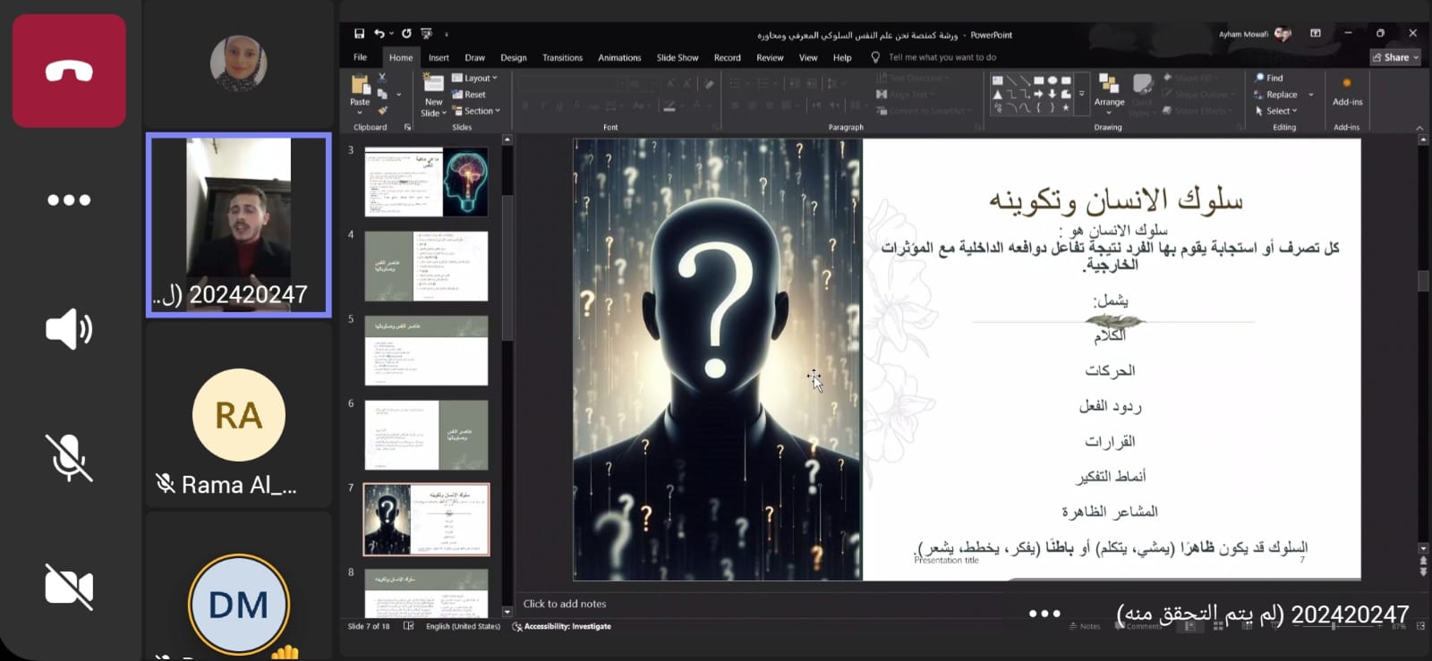 ورشة تَدريبية مُتخصصة في السلوك المعرفي بجامعة إربد الأهلية عبر تطبيق Microsoft Teams بالتعاون مع فريق سفراء منصة "نَحْنُ"