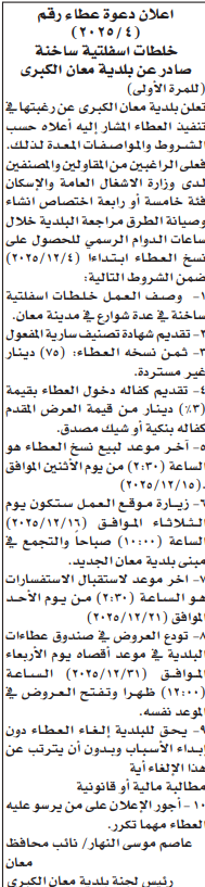 عطاء خلطات اسفلتية لشوارع بلدية معان