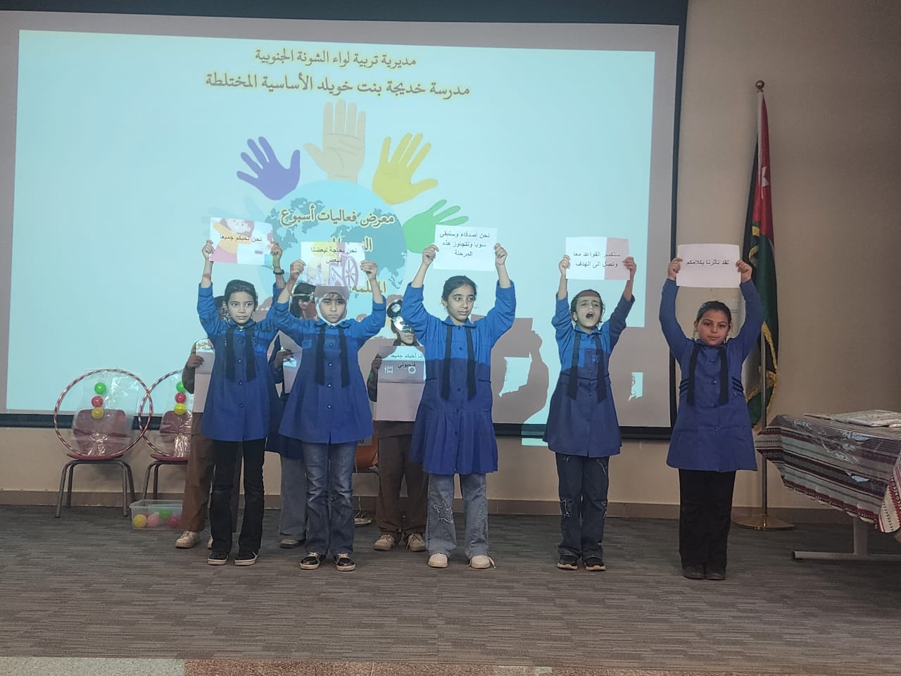 عمون - من شادي نبيل - مندوباً عن مديرة التربية والتعليم للواء الشونة الجنوبية الأستاذة لبنى فرحان العدوان، افتتح الأستاذ هزاع الحناوي، مدير الشؤون التعليمية حفلاً ختامياً لأسبوع الدمج المدرسي في قاعة مسرح مدرسة خديجة بنت خويلد الأساسية المختلطة، بحضور رئيس قسم التعليم العام وشؤون الطلبة الأستاذ محمد الثوابية وضابط ارتباط التعليم الدامج الأستاذ فايز الجعارات.