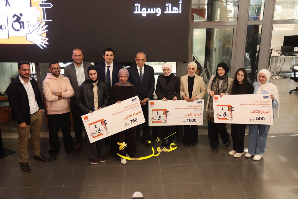 عمون - تحت رعاية وحضور معالي وزير السياحة والآثار، الدكتور عماد حجازين، أعلنت أورنج الأردن، وبمناسبة اليوم العالمي للأشخاص ذوي الإعاقة الذي يصادف 3 كانون الأول، عن الفائزين في "هاكاثون الحلول الرقمية في القطاع السياحي للأشخاص ذوي الإعاقة"، الذي أطلقته بالتزامن مع يوم السياحة العالمي، وذلك في إطار جهودها لتعزيز الابتكار وتمكين الأشخاص ذوي الإعاقة من المشاركة الكاملة في التجربة السياحية، وذلك ضمن مبادراتها المبتكرة تحت مظلة حملة "قدراتنا مختلفة، ولكن إمكانياتنا أكيدة"، الهادفة إلى تعزيز الشمول الرقمي وتمكين جميع أفراد المجتمع.