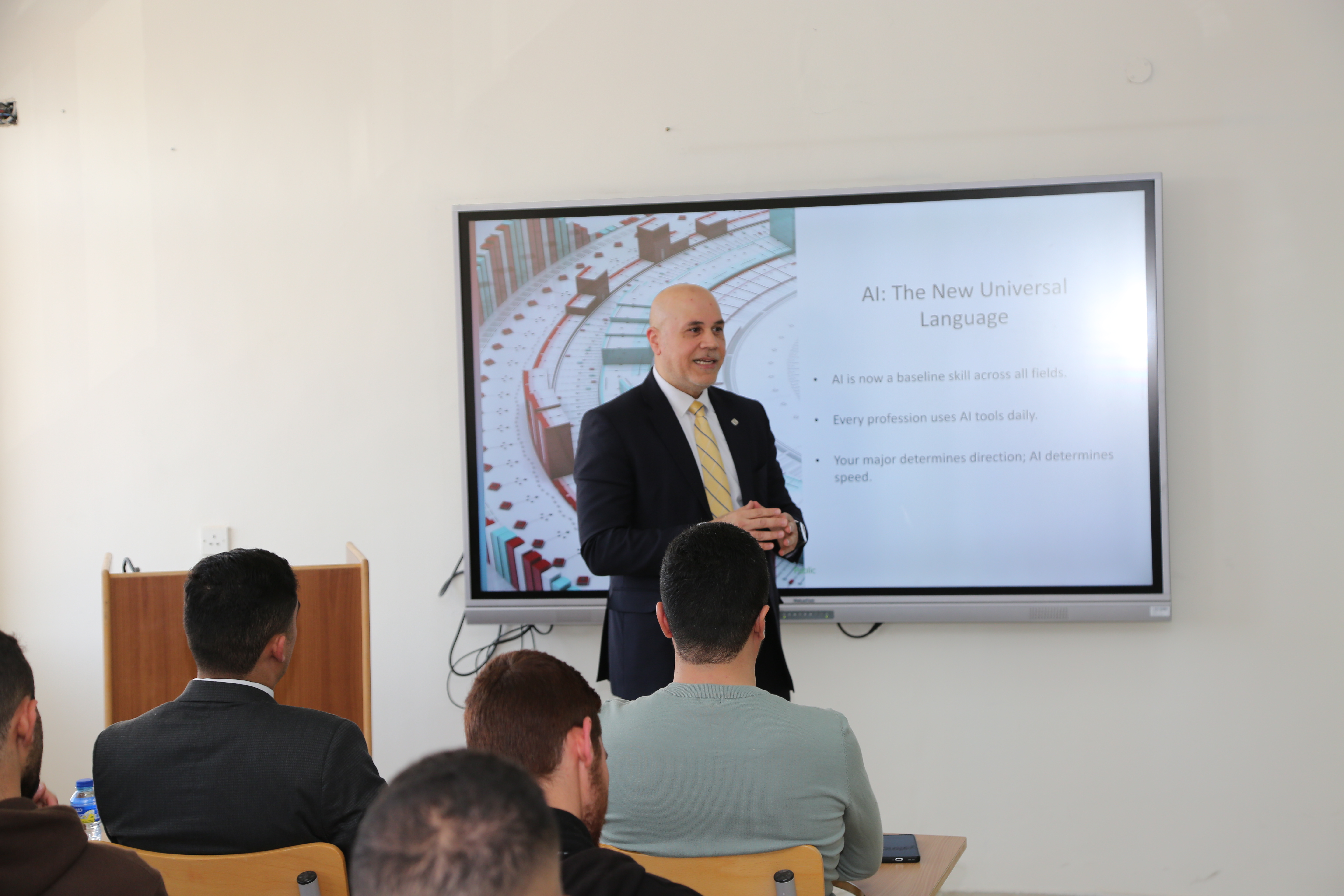 محاضرة علمية في كلية الأعمال حول استخدامات الذكاء الاصطناعي في قطاع التأمين