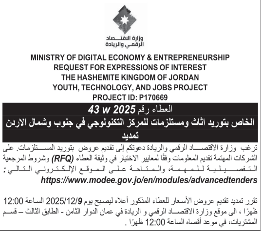 عطاء صادر عن وزارة الاقتصاد الرقمي والريادة