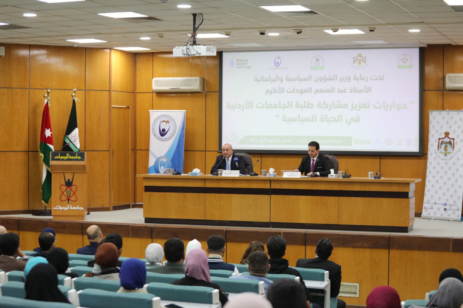 وبين أن هذا اللقاء الحواري الذي يجمع خبرات صناع القرار وأفكار الشباب كأحد الركائز الأساسية للتحديث السياسي، يعتبر منصة لتشجيع التفكير الناقد والابتكار، وفرصة لتقديم حلول عملية للتحديات المجتمعية والسياسية، الأمر الذي يجعل من اليرموك بيئة خصبة لتبادل الأفكار الشابة في النقاشات الوطنية.
