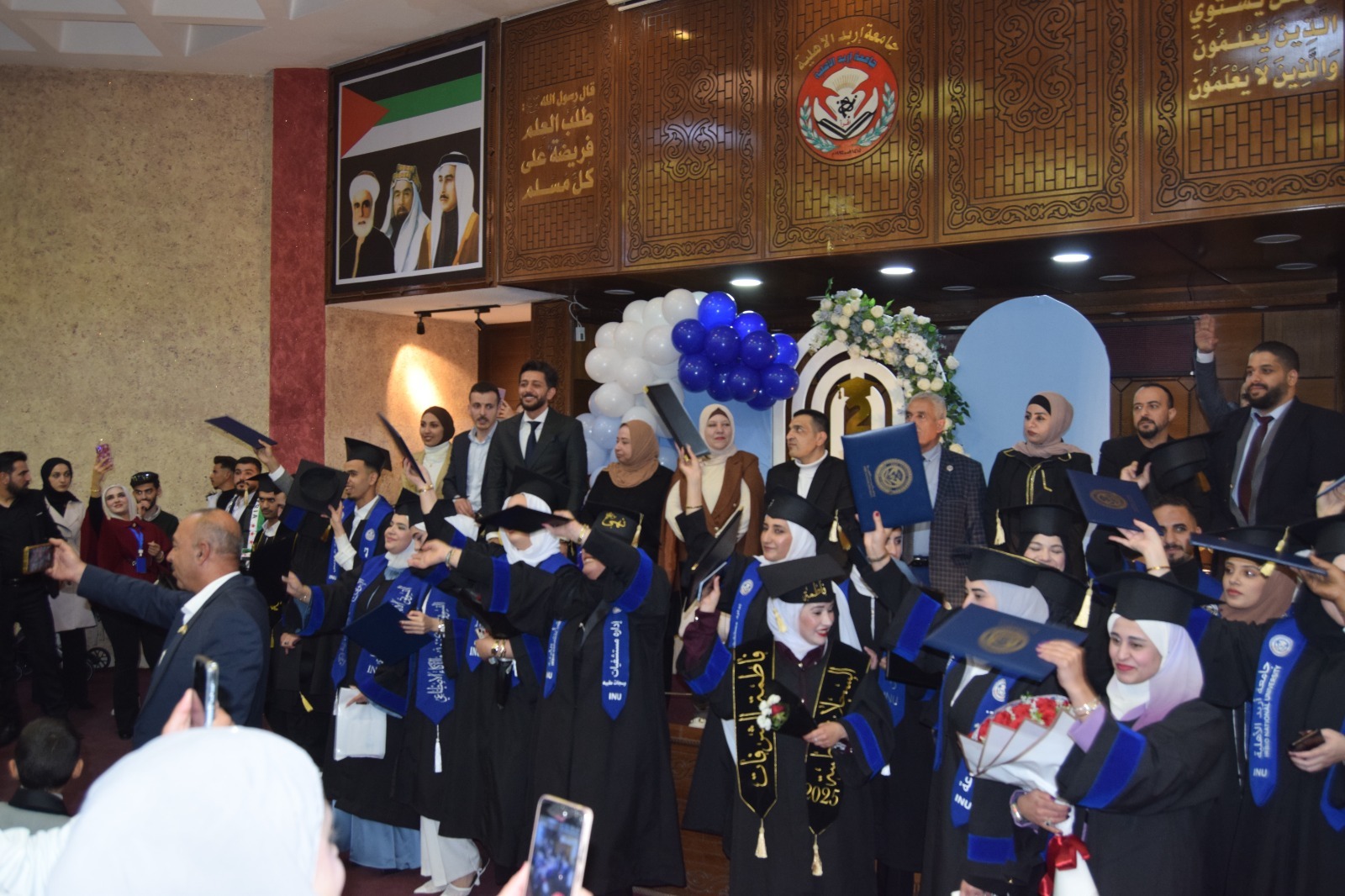 عمون - برعاية الأستاذ الدكتور غسان الشمري نائب رئيس جامعة إربد الأهلية، مندوبًا عن رئيس الجامعة الأستاذ الدكتور ماجد أبو زريق، نظّم مركز الاستشارات والتدريب وخدمة المجتمع في الجامعة حفل تخريج طلبة الدبلومات المهنية والتدريبية لأكاديمية "معًا نمضي"، بحضور مدير عام الأكاديمية الدكتورة مريم طعامنة، ومدير المركز الدكتور ثائر العجولي، وعميد شؤون الطلبة الدكتور فايز العتوم، وجمعٍ من الأكاديميين والإداريين وذوي الخريجين، وذلك على مدرج الكندي في الجامعة.