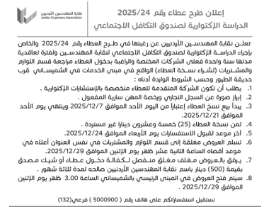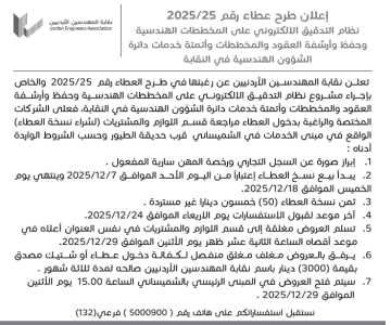 عطاءات صادرة عن نقابة المهندسين الاردنيين