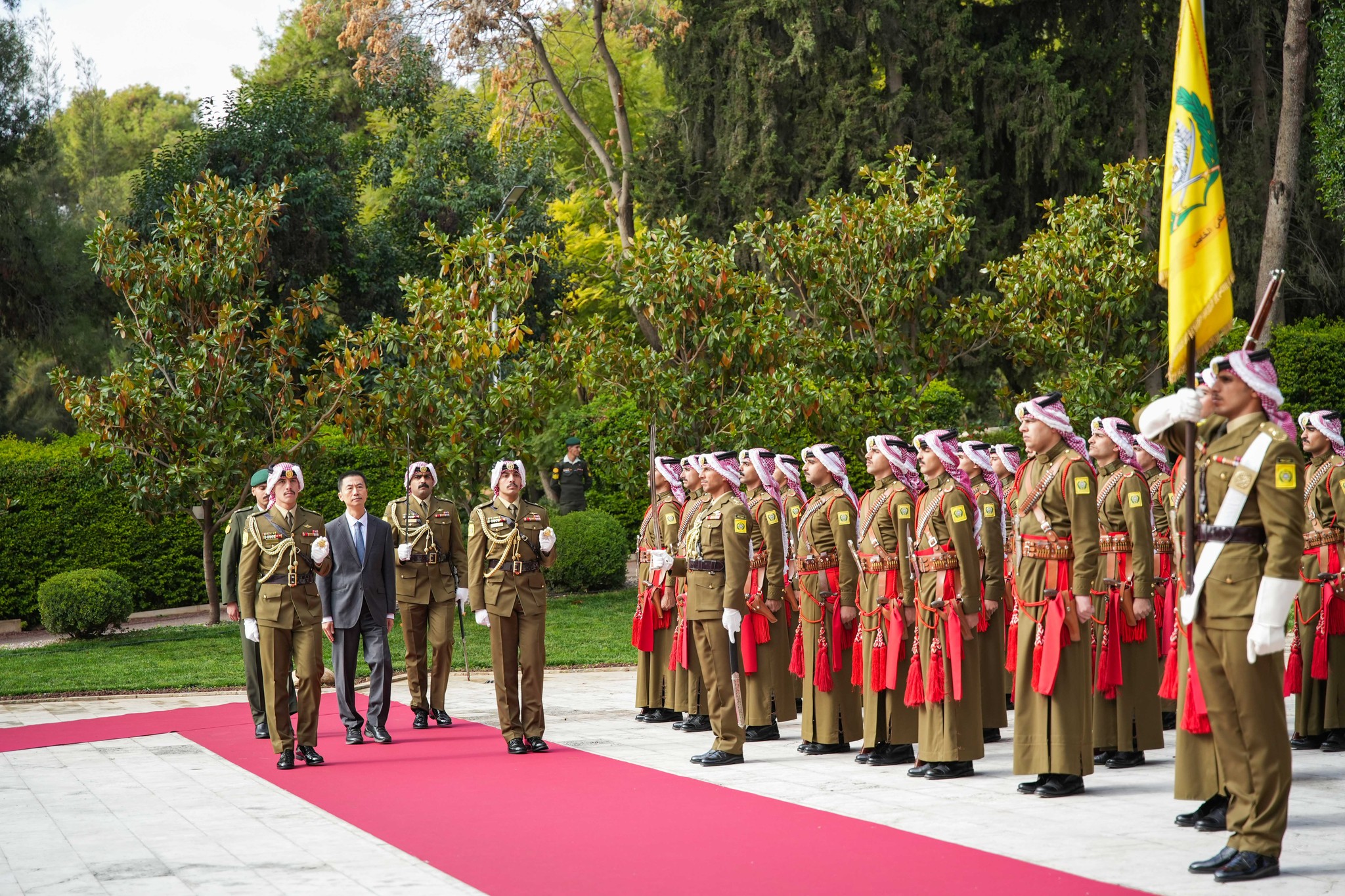 ولدى وصول السفراء قصر بسمان الزاهر عزفت الموسيقى السلام الملكي الأردني والسلام الوطني لبلدانهم.