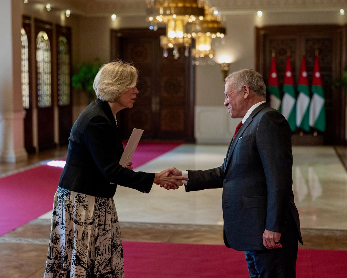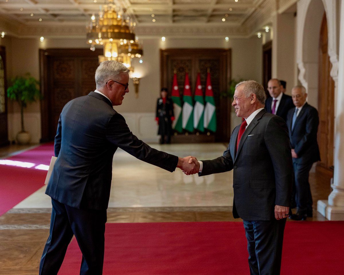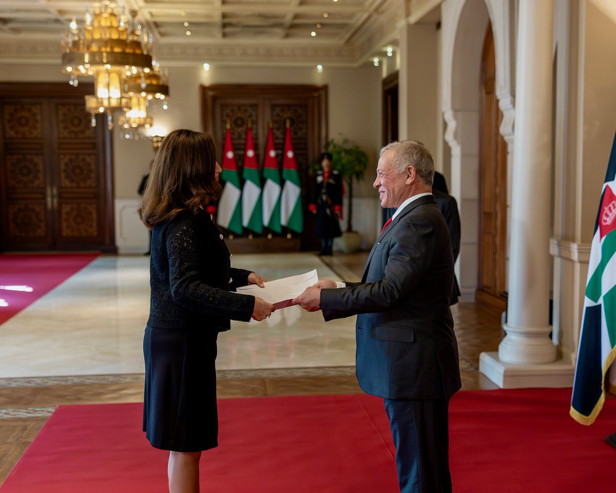 وحضر مراسم تقبل أوراق الاعتماد رئيس الديوان الملكي الهاشمي يوسف حسن العيسوي، ونائب رئيس الوزراء ووزير الخارجية وشؤون المغتربين أيمن الصفدي.
