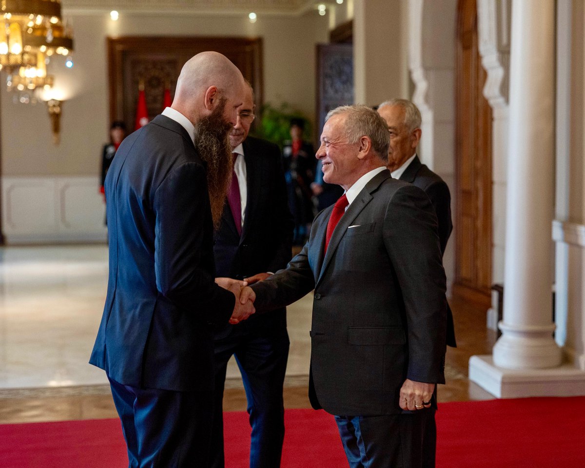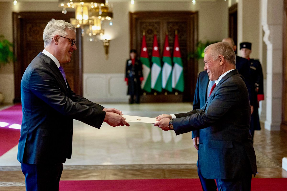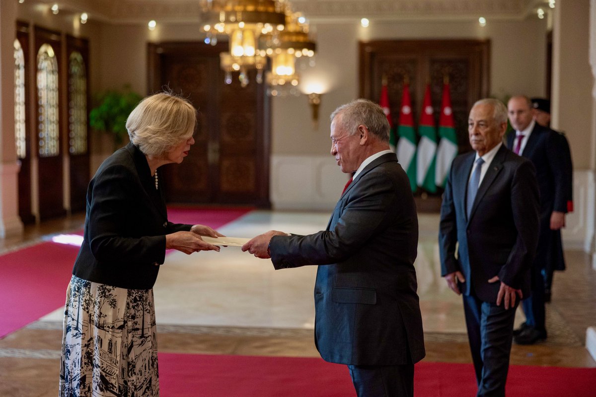وحضر مراسم تقبل أوراق الاعتماد رئيس الديوان الملكي الهاشمي يوسف حسن العيسوي، ونائب رئيس الوزراء ووزير الخارجية وشؤون المغتربين أيمن الصفدي.