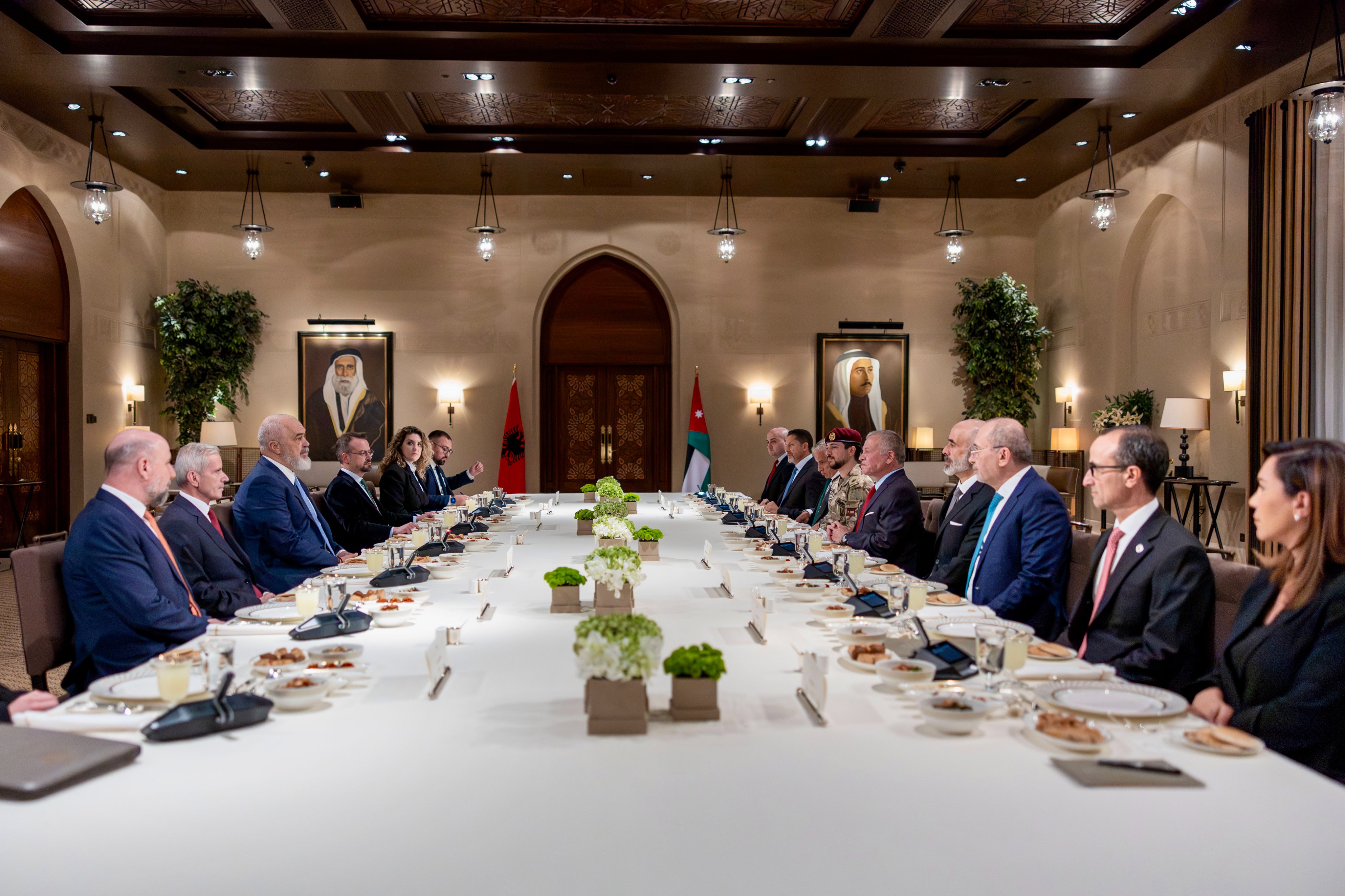 وحضر اللقاء رئيس الوزراء الدكتور جعفر حسان، ونائب رئيس الوزراء ووزير الخارجية وشؤون المغتربين أيمن الصفدي، ومدير مكتب جلالة الملك، المهندس علاء البطاينة، وسفير ألبانيا لدى الأردن سامي شيبا، والوفد المرافق للضيف.