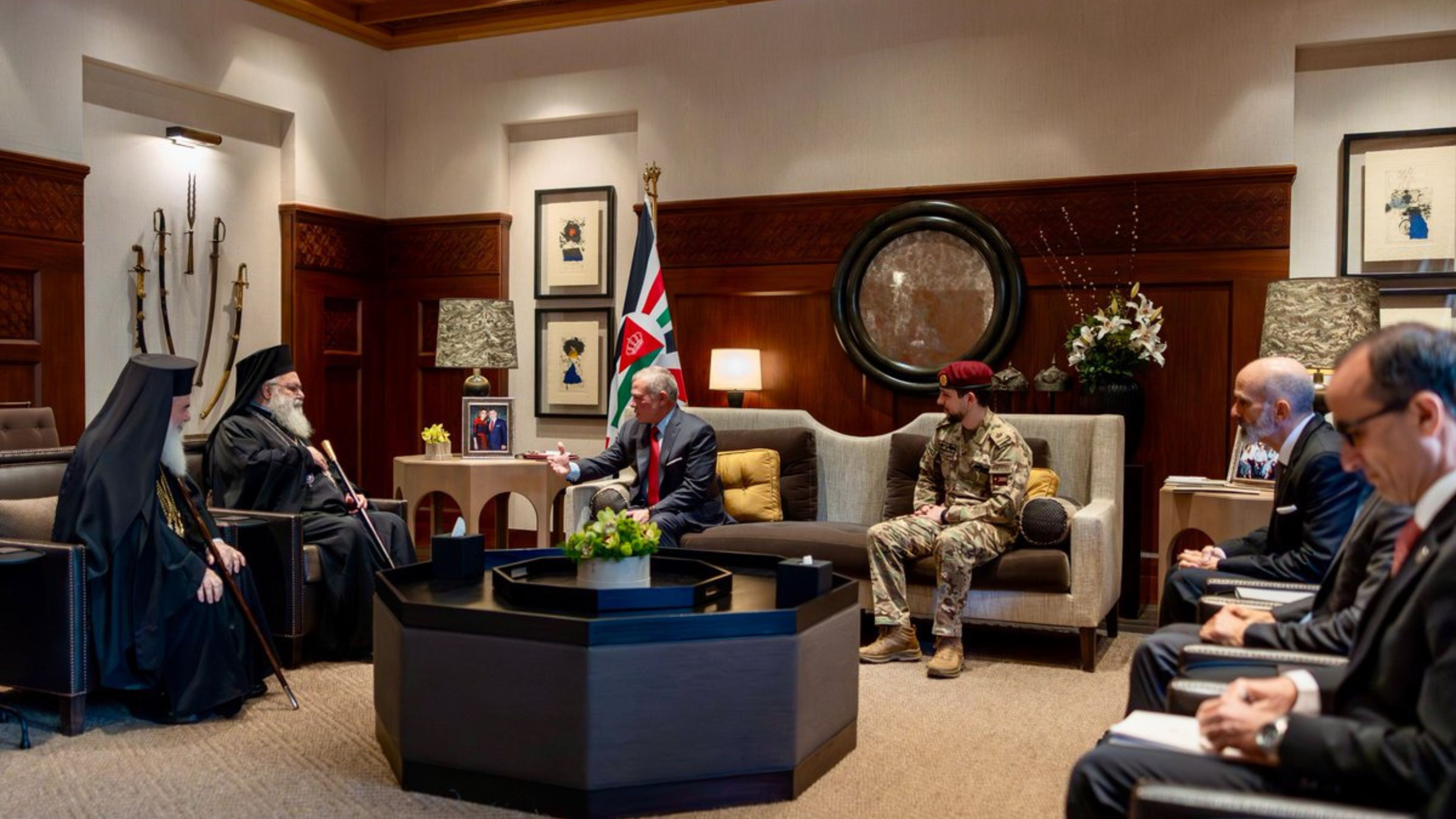 ولفت جلالة الملك، بحضور سمو الأمير غازي بن محمد، كبير مستشاري جلالة الملك للشؤون الدينية والثقافية، المبعوث الشخصي لجلالته، وغبطة البطريرك ثيوفيلوس الثالث، بطريرك القدس وسائر أعمال فلسطين والأردن، إلى استمرار الأردن بالقيام بدوره الديني والتاريخي في حماية هذه المقدسات، انطلاقا من الوصاية الهاشمية عليها.