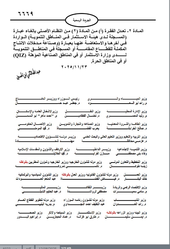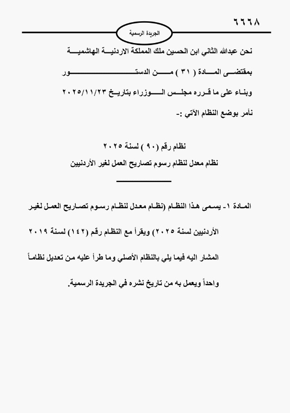 صدور نظام معدّل لرسوم تصاريح العمل لغير الأردنيين في الجريدة الرسمية08-12-2025 07:42 PM