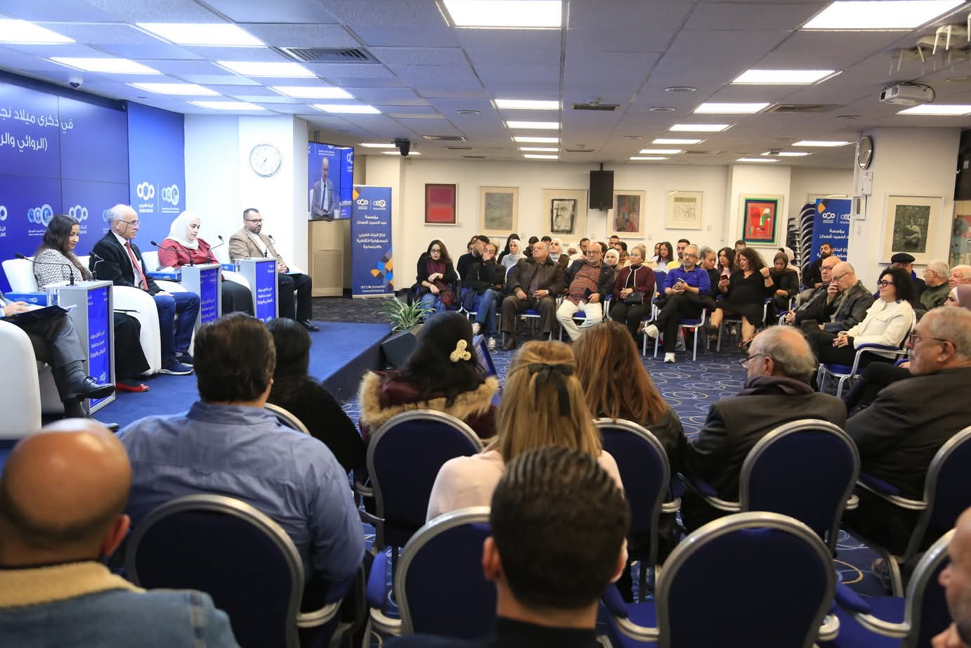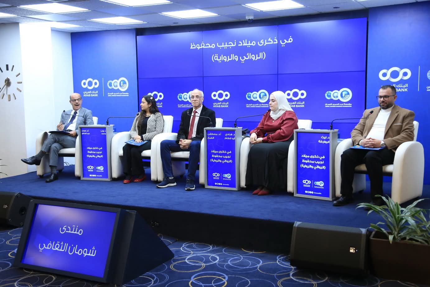 عمون - عاينت ندوة نظمها المنتدى الثقافي في مؤسسة عبد الحميد شومان، مساء أمس، مجموعة من الأعمال الأدبية والروائية لنجيب محفوظ بمناسبة ذكرى ميلاده الـ 114، بحضور نخبة من الأدباء والكتاب والمعنيين.