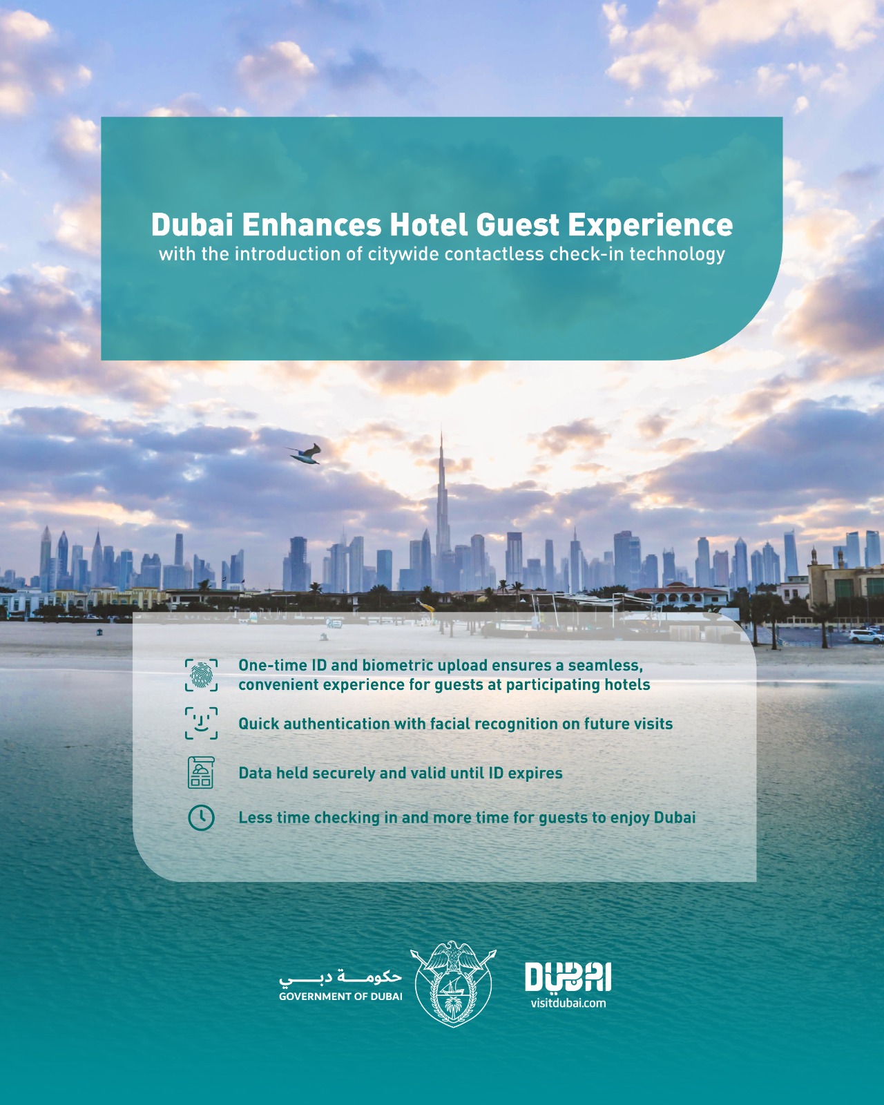 أما في الزيارات اللاحقة، فلا يتطلب الأمر سوى مصادقة بيومترية سريعة، مثل: التحقق من خلال التعرف على بصمة الوجه لتأكيد الدخول خلال ثوانٍ معدودة، بما يعزز راحة الزوار وخاصة أصحاب الزيارات المتكررة خلال 12 شهراً من رحلتهم السابقة والذين تشكل نسبتهم ما يقرب من ربع إجمالي الزيارات السنوية للإمارة، ويرفع كفاءة العمليات التشغيلية للفنادق. كما تنسجم هذه الآلية مع البنية التقنية المتقدمة في دبي، ومنها الممرات الذكية في مطار دبي الدولي التي قلصت الفترة الزمنية لمعالجة مراقبة الجوازات لثواني معدودة.