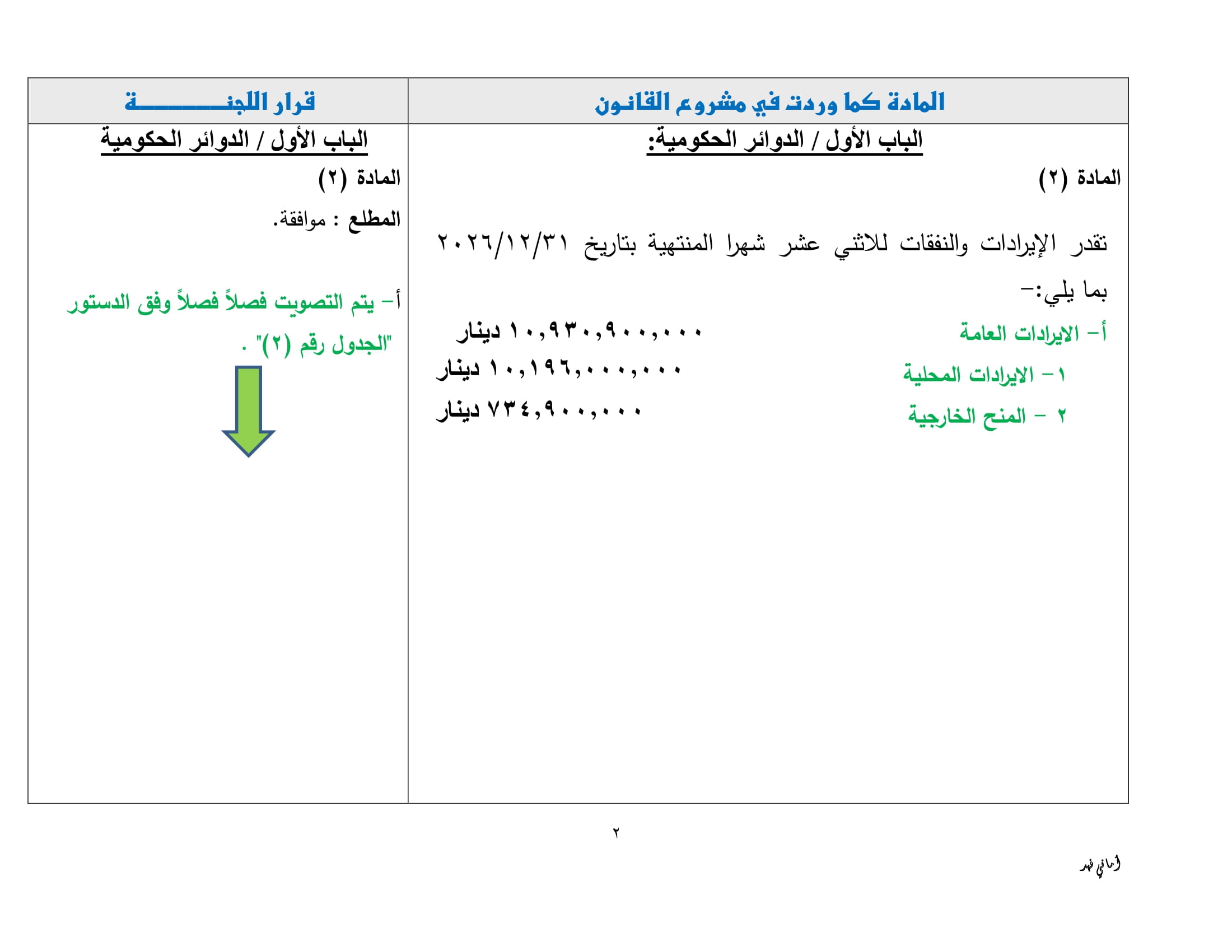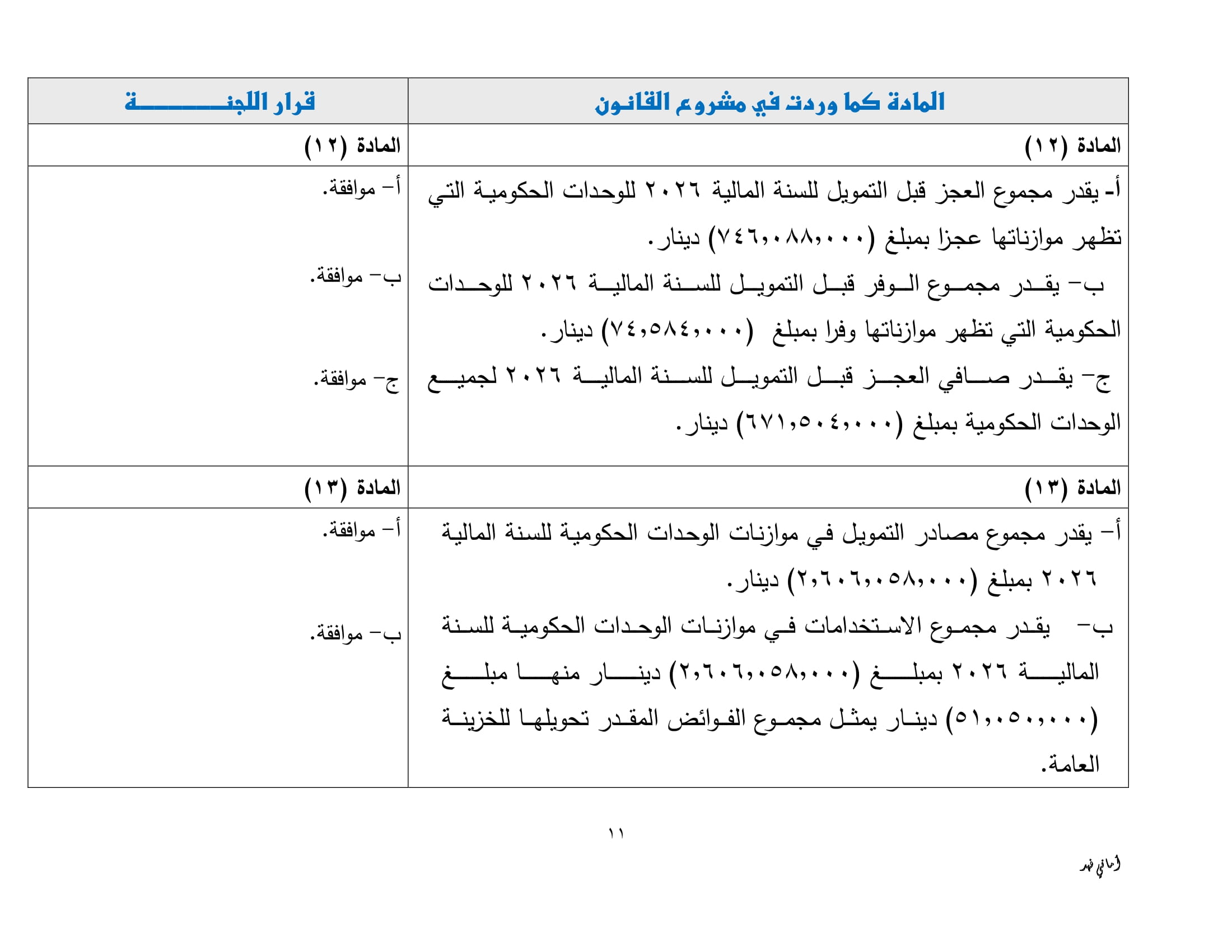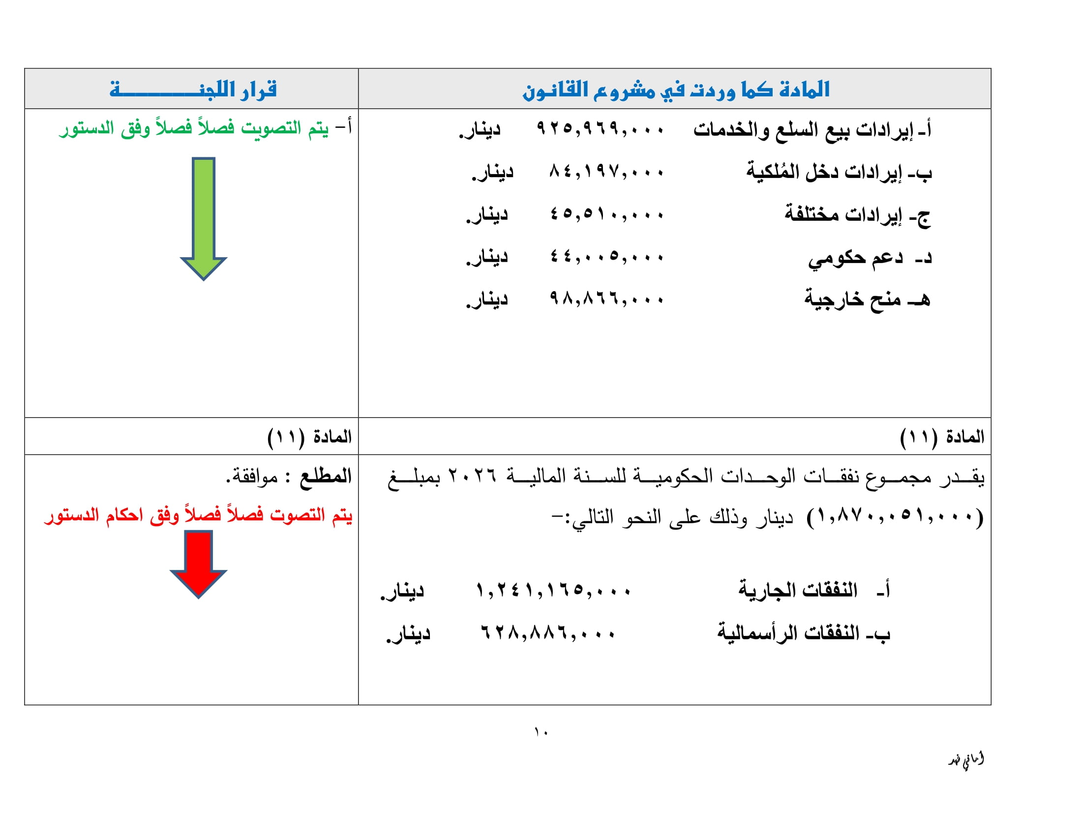 النواب يقر موازنة 2026 بعجز 2 مليار و125 مليونا و225 ألف دينار
