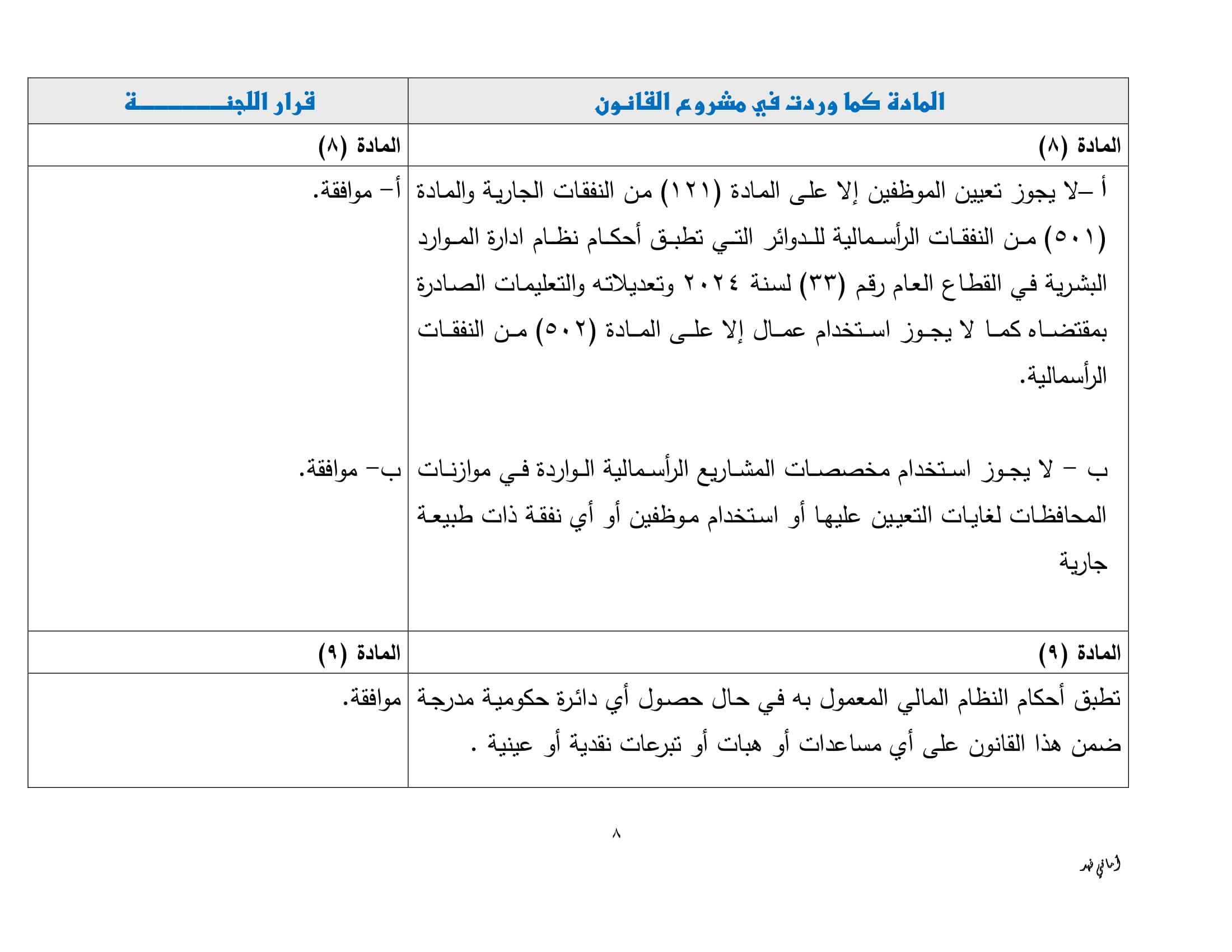 وكانت اللجنة المالية النيابية أقرت في السابع من شهر كانون الأول 2025، مشروع القانون، وذلك بعد 104 اجتماعات عقدتها على مدار 13 يومًا.