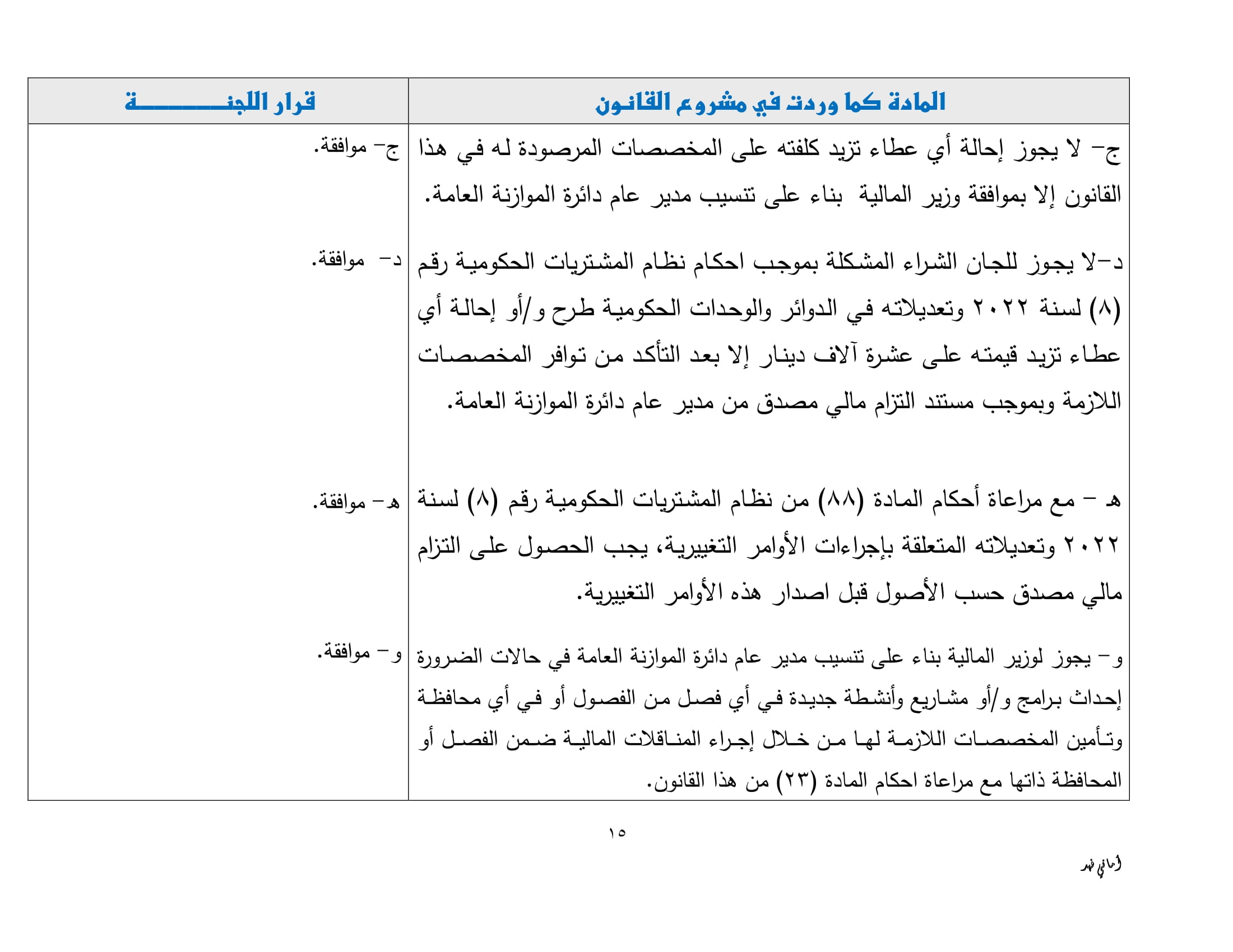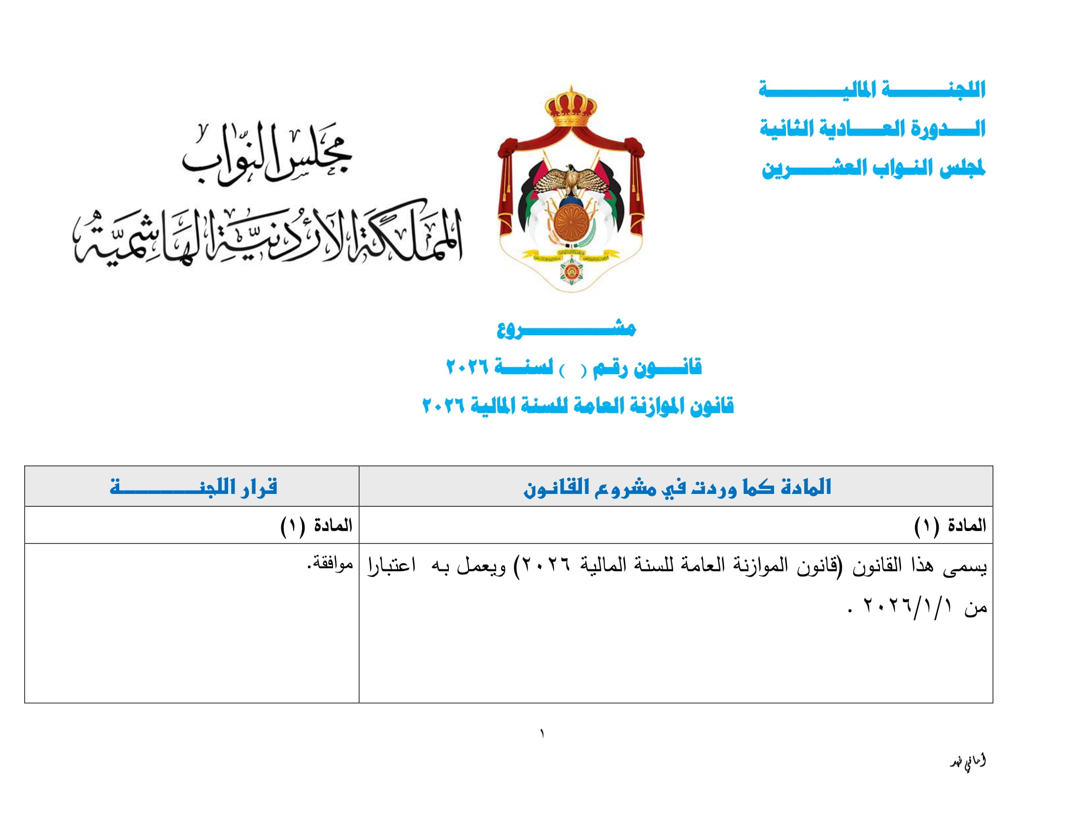 وبعد إقرار مشروع القانون، تشرع اللجنة المالية في مجلس الأعيان بمُناقشة "موازنة 2026"، لترفع توصياتها إلى مجلس الأعيان، من أجل إقراره، ومن ثم توشيحه بالإرادة الملكية السامية ونشره في الجريدة الرسمية.