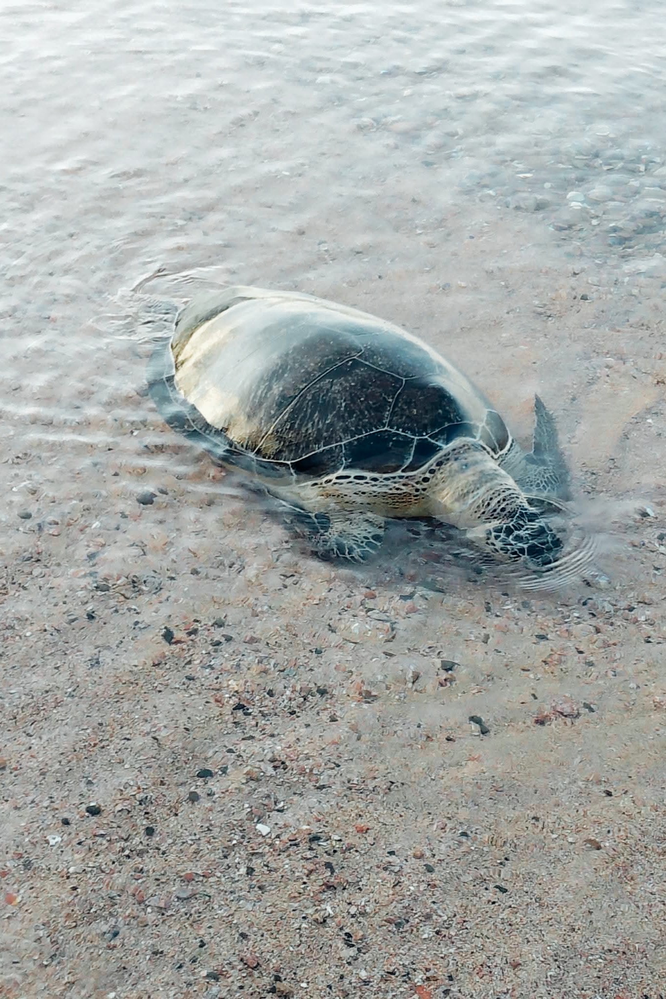 عمون - عثر على سلحفاة كبيرة نافقة على شاطئ الغندور في مدينة العقبة.