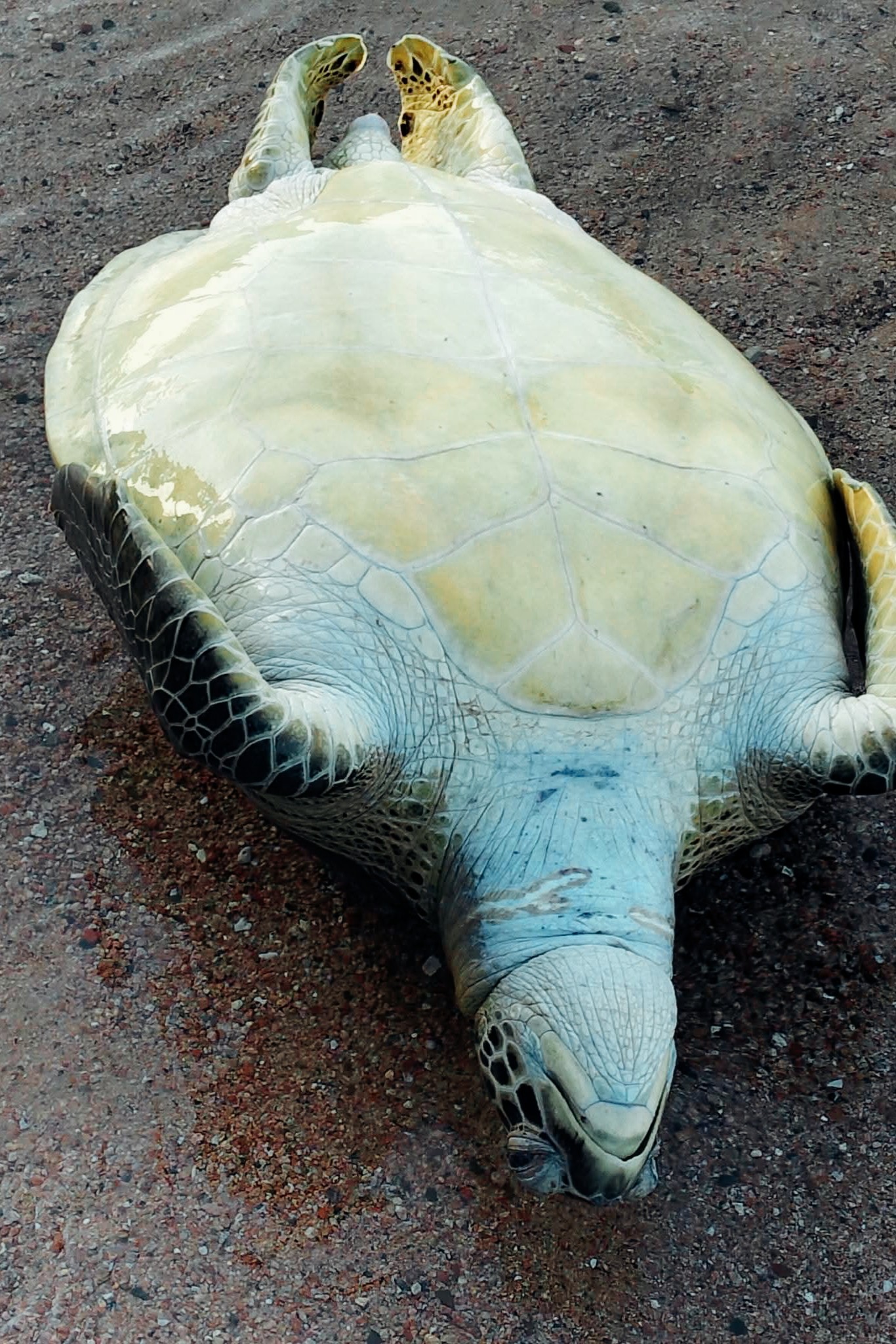 وظهر على السلحفاة آثار حبل ملتف حول رقبتها، مما يسلّط الضوء على المخاطر الكبيرة التي تتعرض لها الكائنات البحرية بسبب النفايات التي تلقى في البحر بشكل عشوائي.