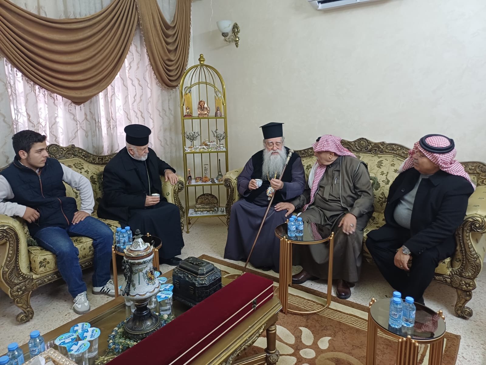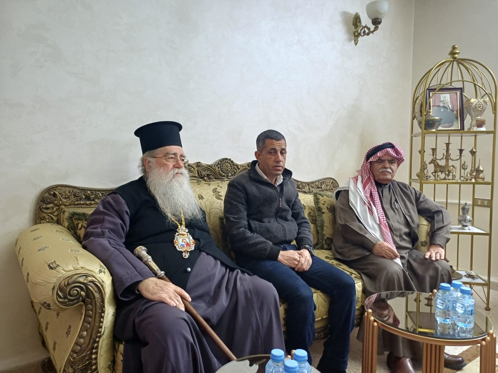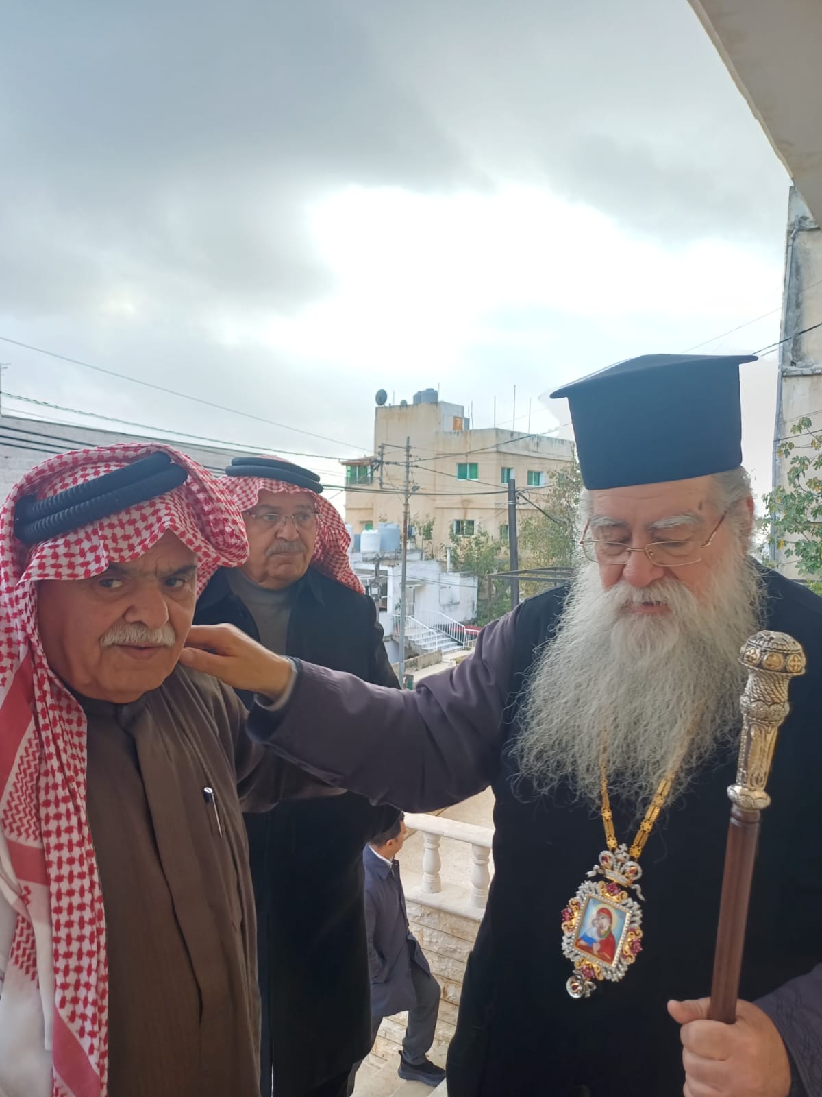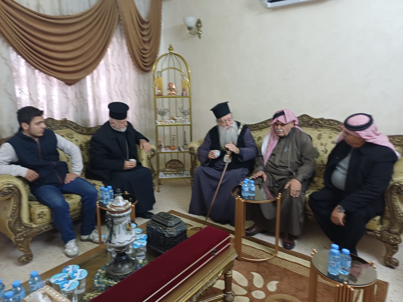 عمون - زار المطران فنذكتوس مطران القدس، منزل الشيخ طعان ابو هزيم، مقدما واجب العزاء بوفاة نجله المرحوم الصحفي عبدالرزاق طعان ابوهزيم.