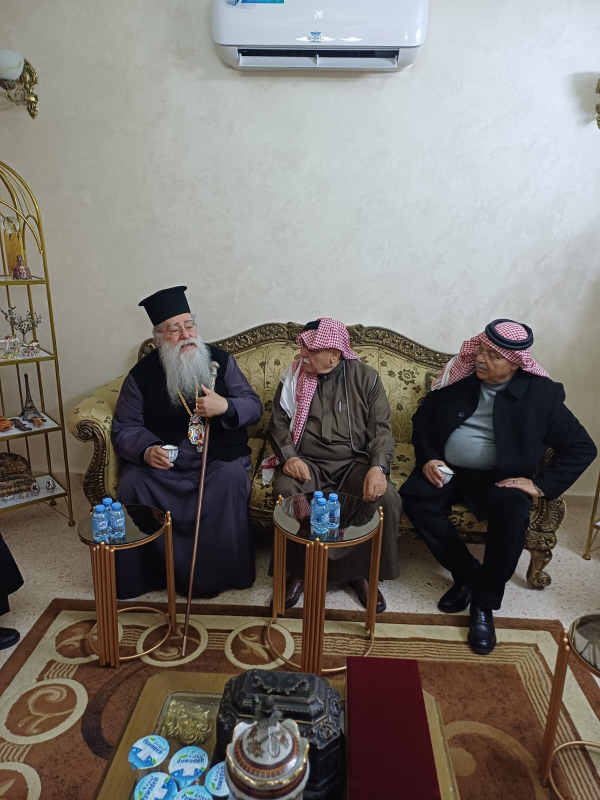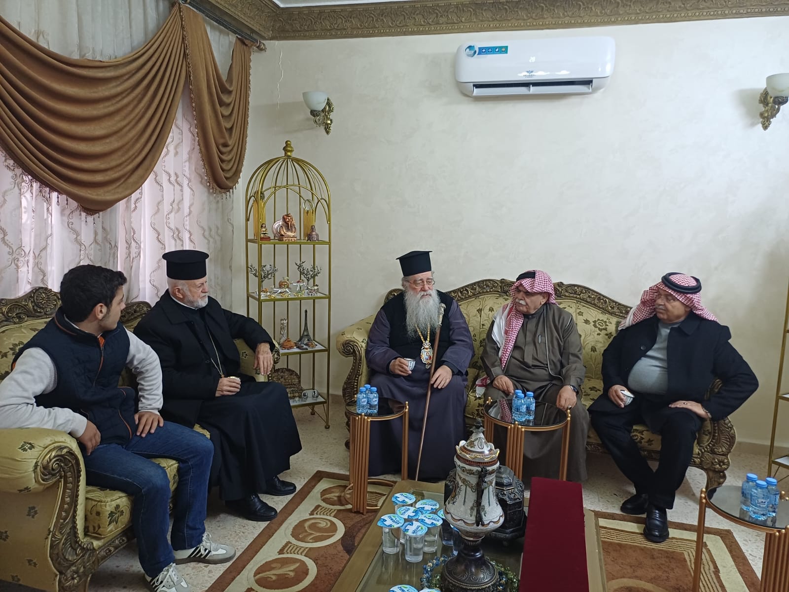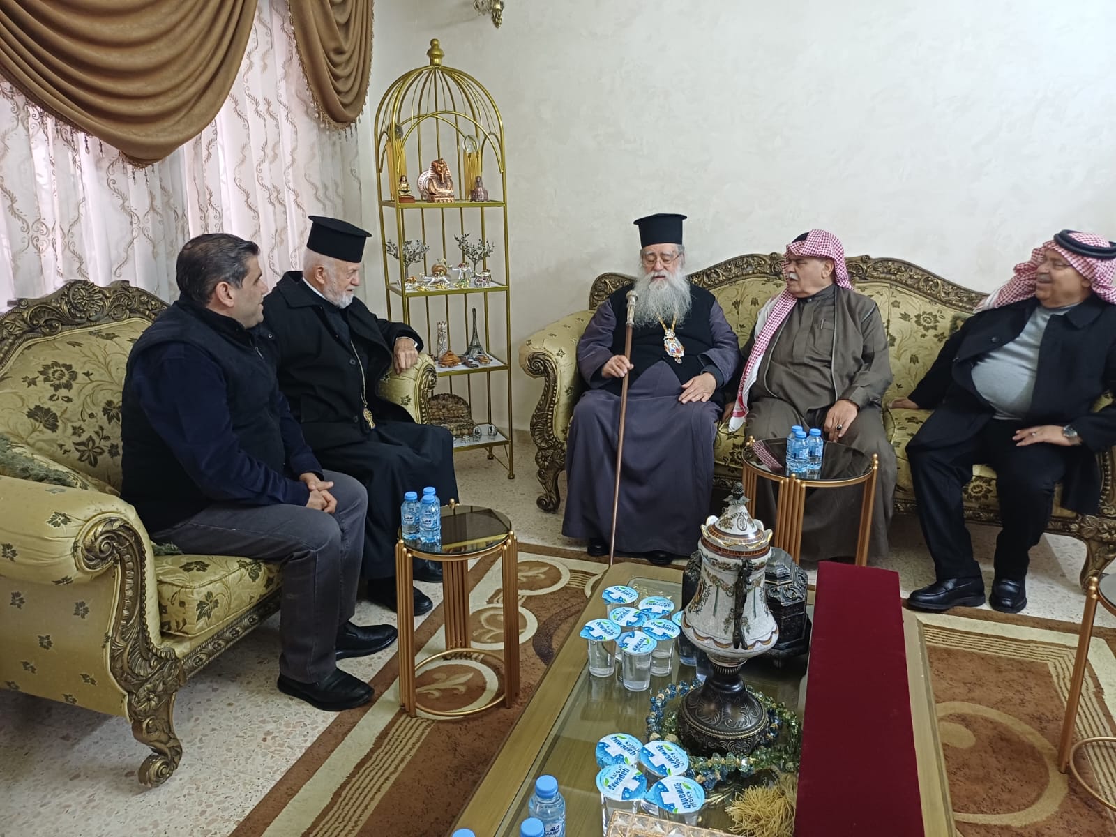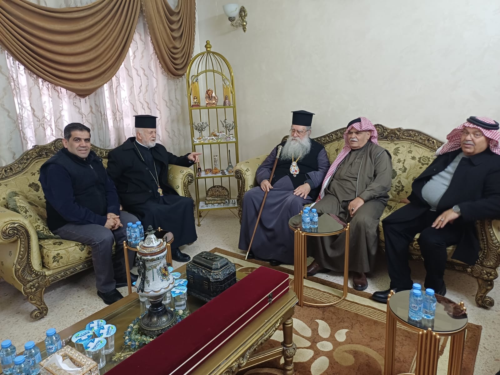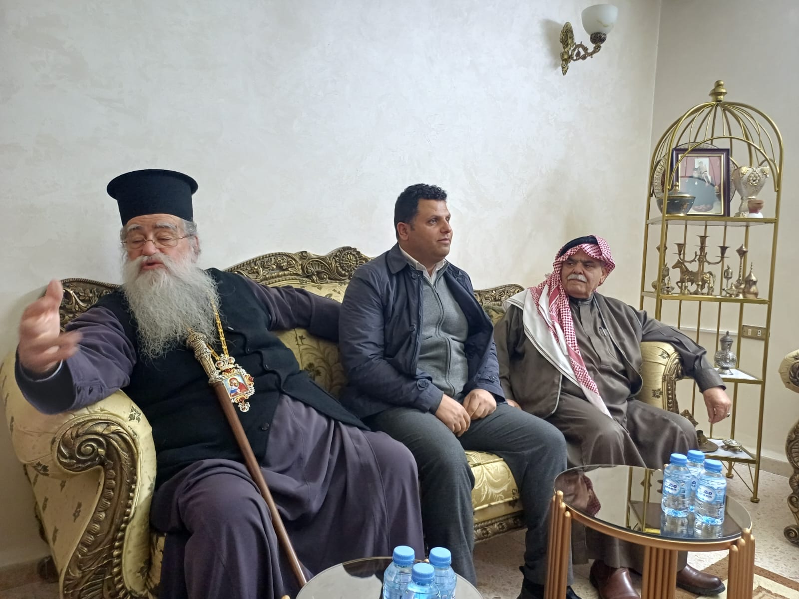 عمون - زار المطران فنذكتوس مطران القدس، منزل الشيخ طعان ابو هزيم، مقدما واجب العزاء بوفاة نجله المرحوم الصحفي عبدالرزاق طعان ابوهزيم.
