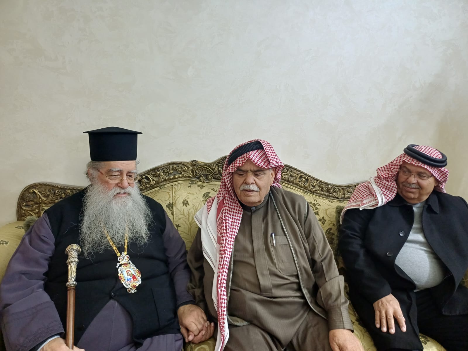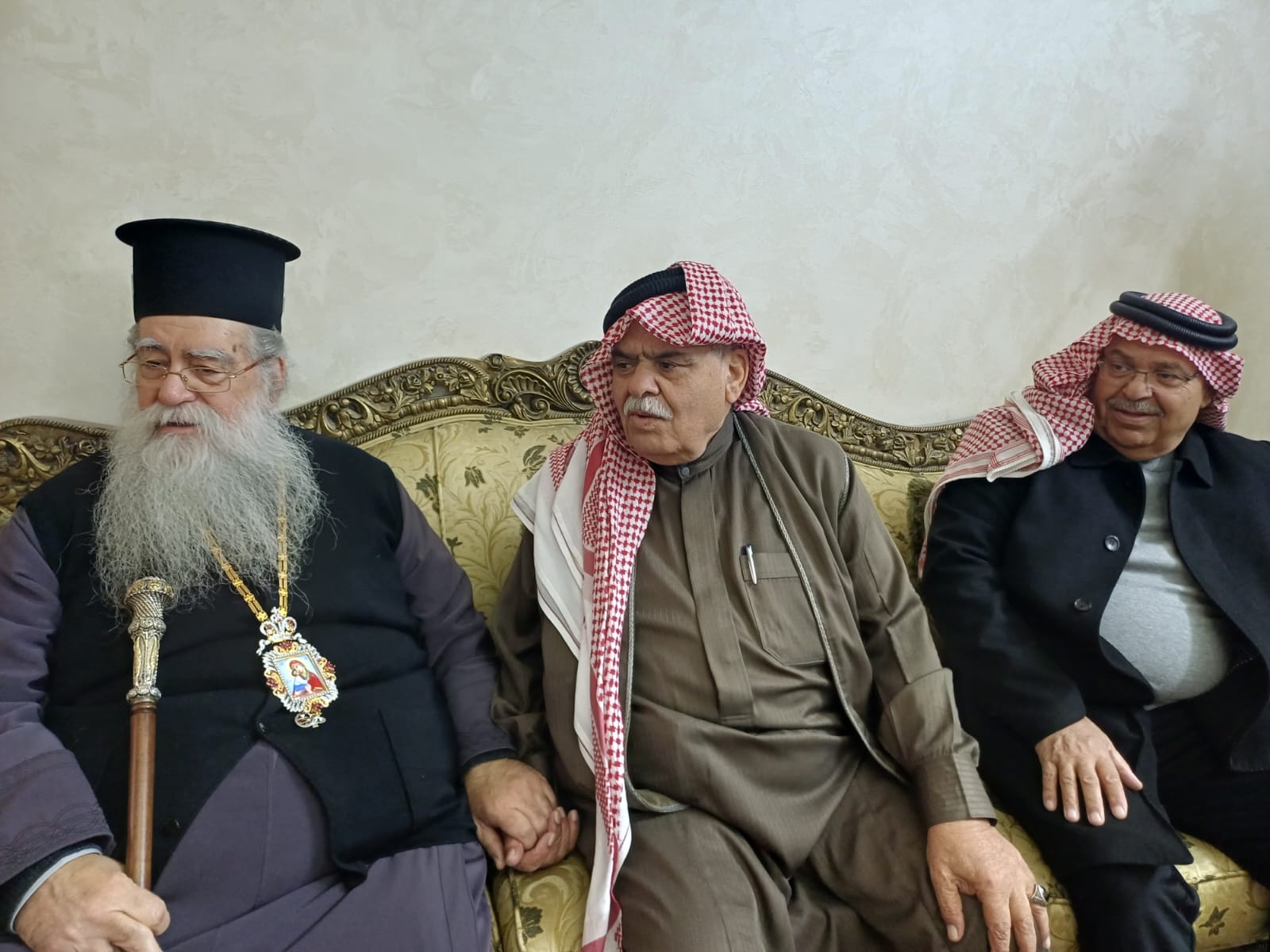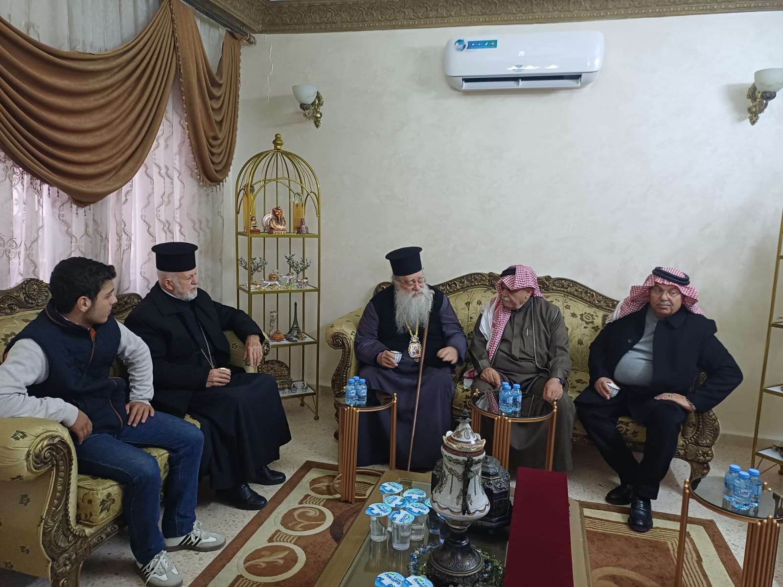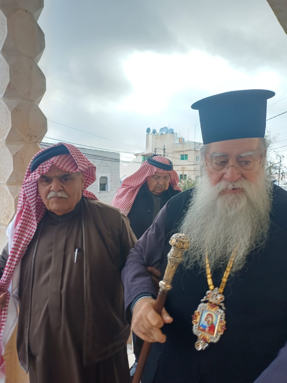 عمون - زار المطران فنذكتوس مطران القدس، منزل الشيخ طعان ابو هزيم، مقدما واجب العزاء بوفاة نجله المرحوم الصحفي عبدالرزاق طعان ابوهزيم.