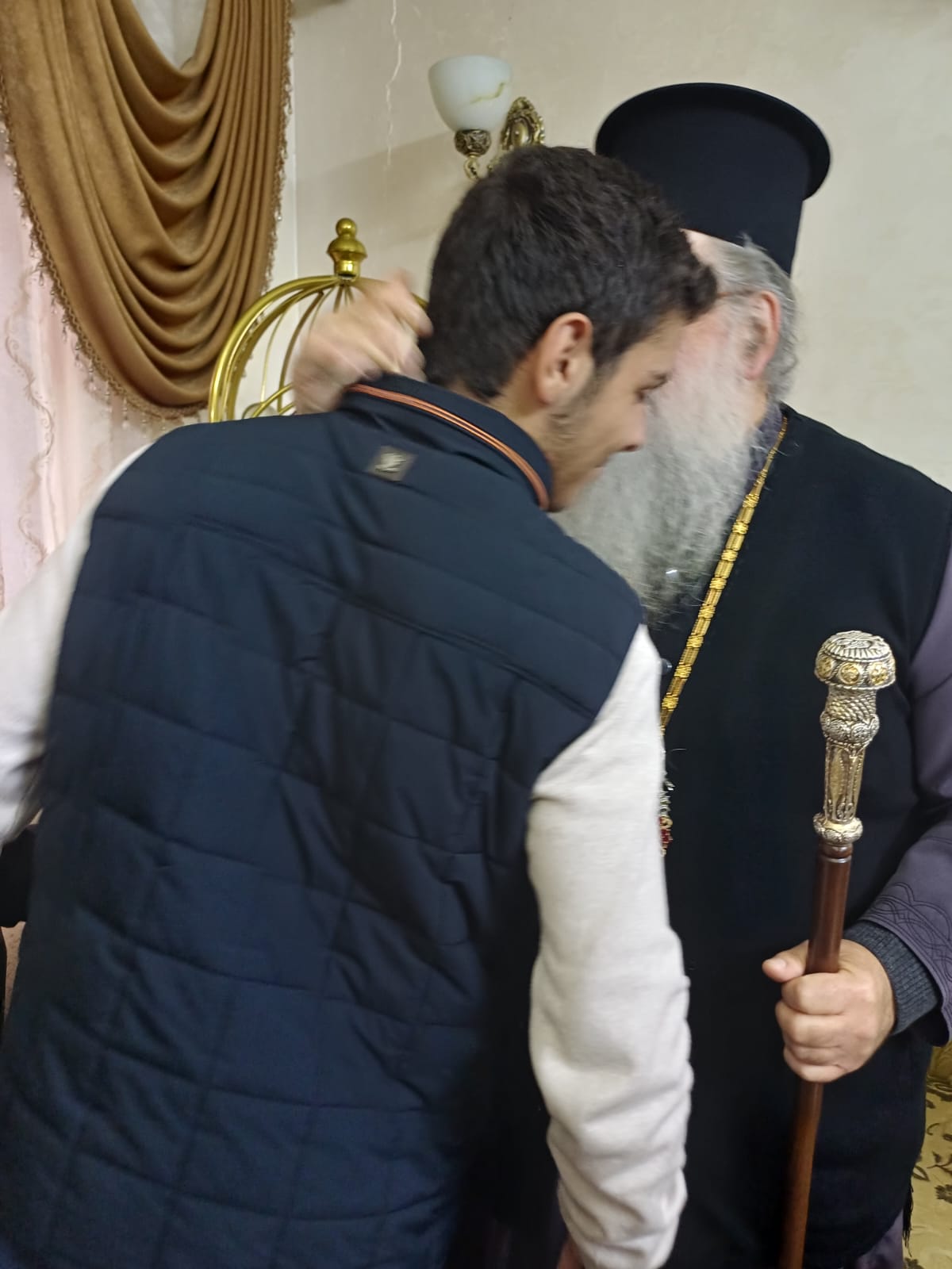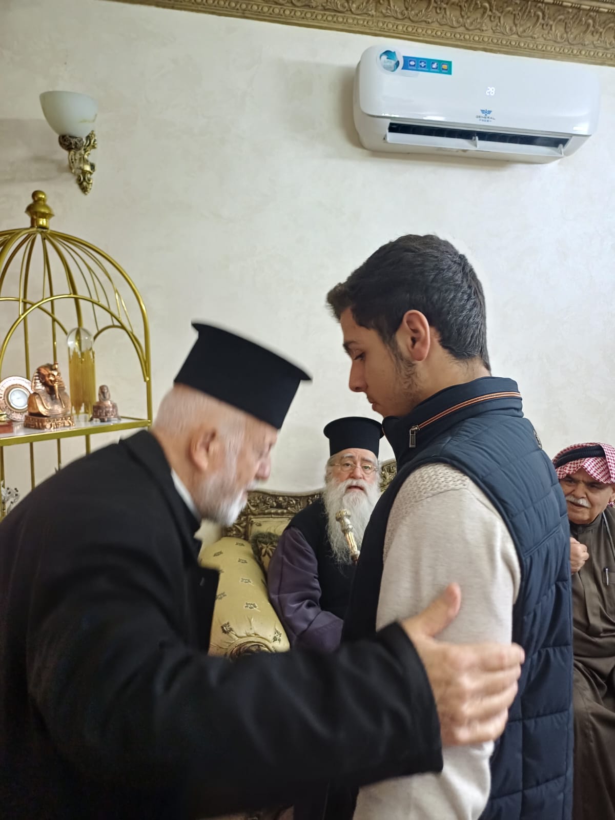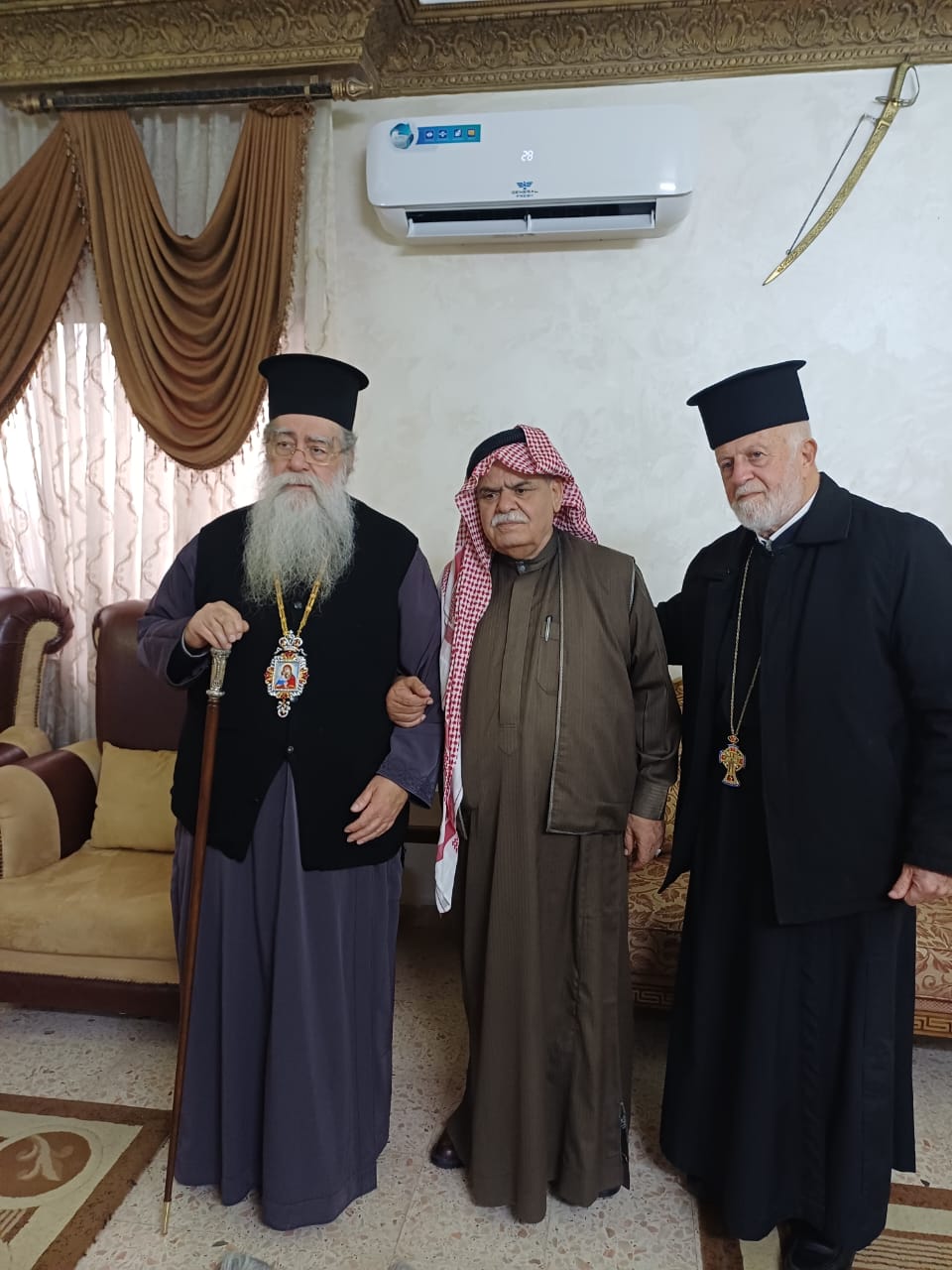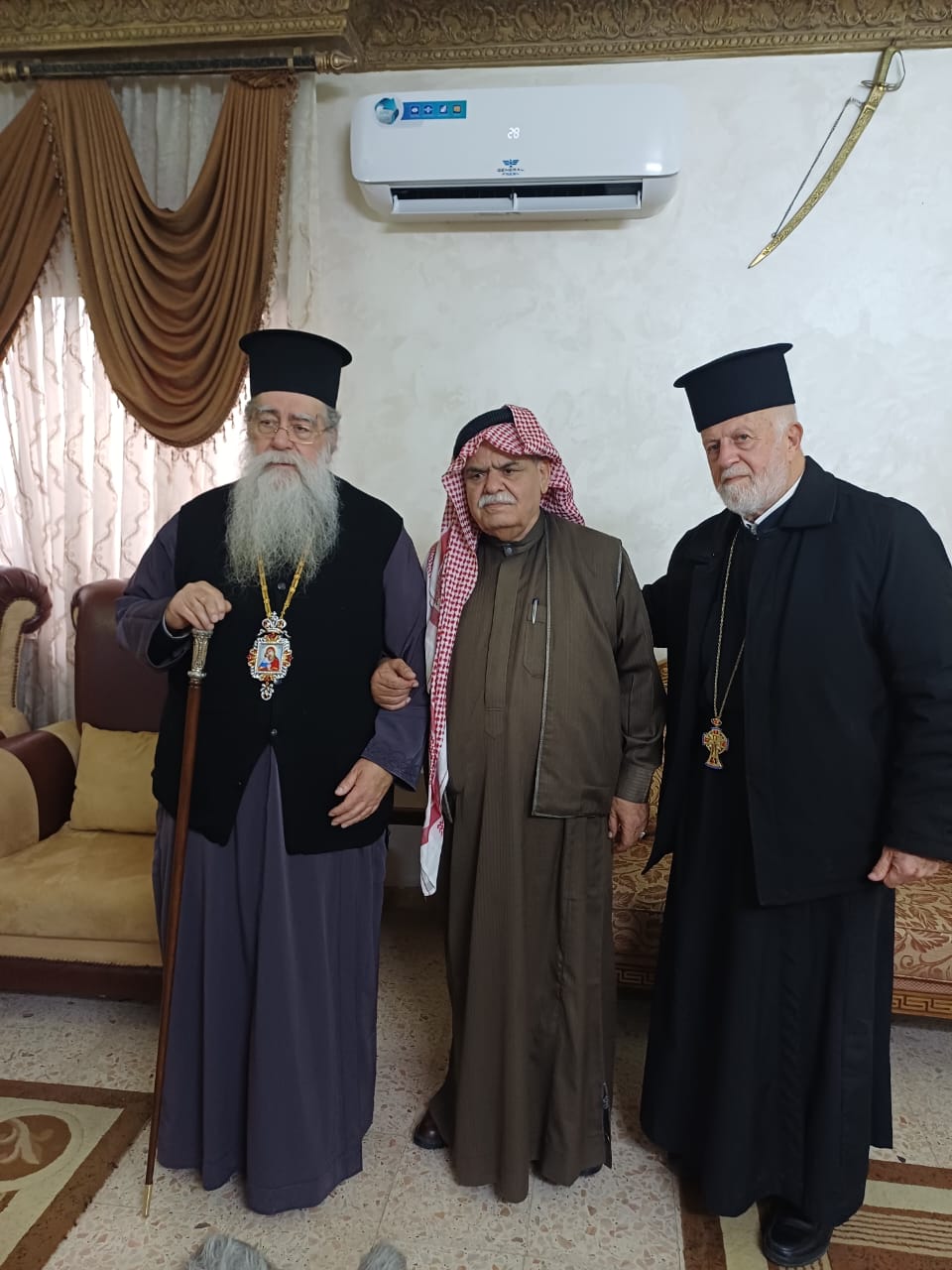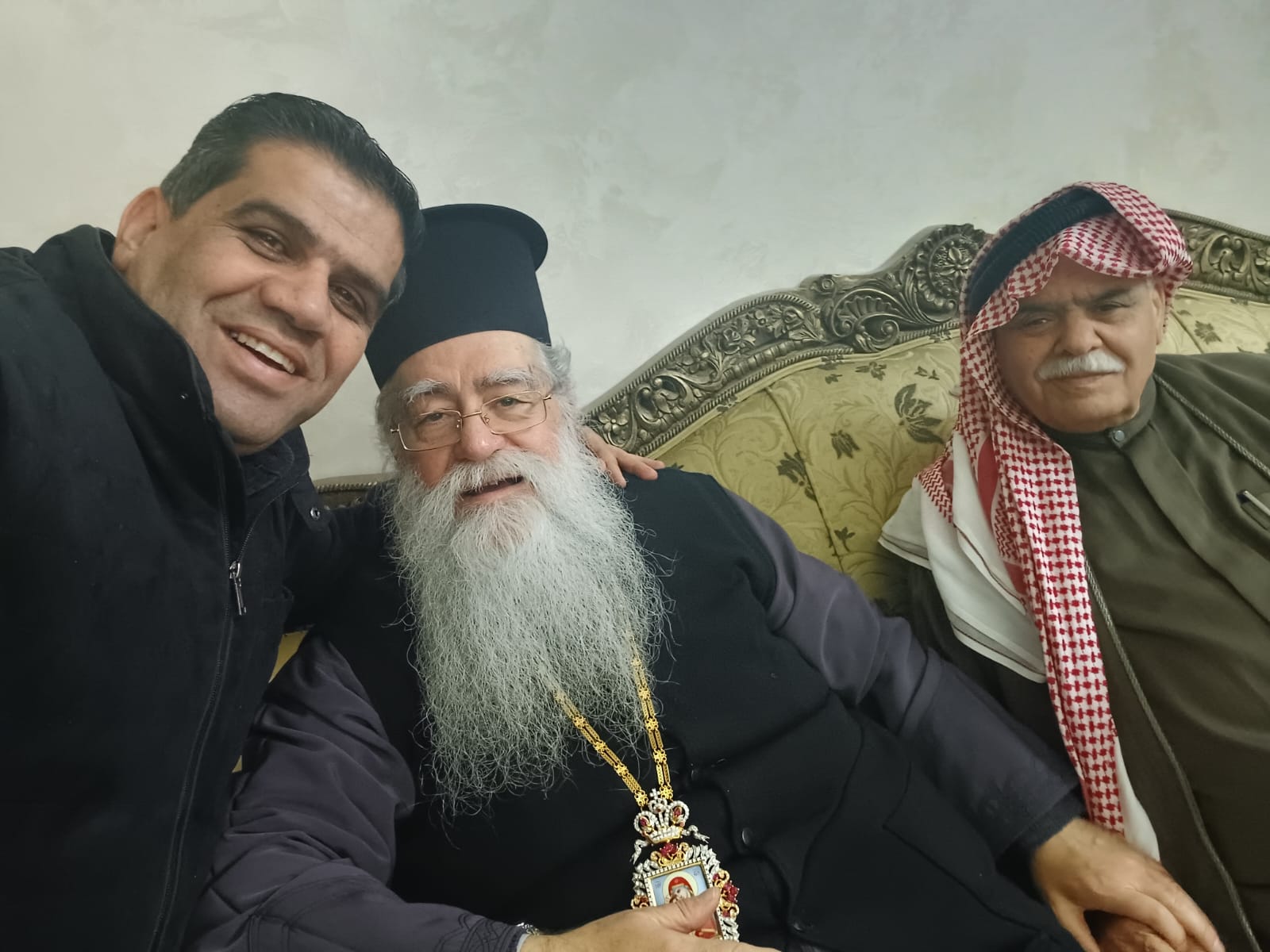 عمون - زار المطران فنذكتوس مطران القدس، منزل الشيخ طعان ابو هزيم، مقدما واجب العزاء بوفاة نجله المرحوم الصحفي عبدالرزاق طعان ابوهزيم.