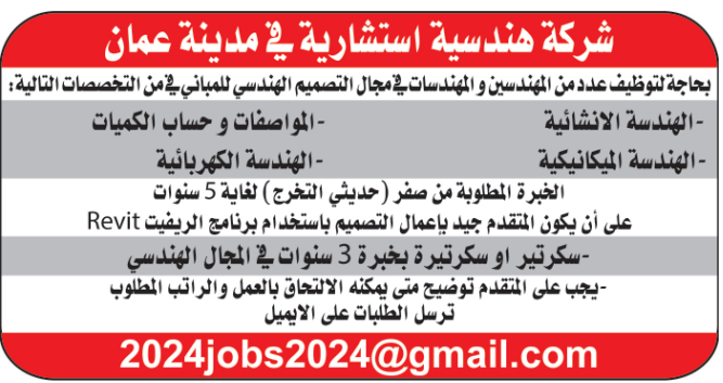شركة استشارات هندسية بحاجة لمهندسين
